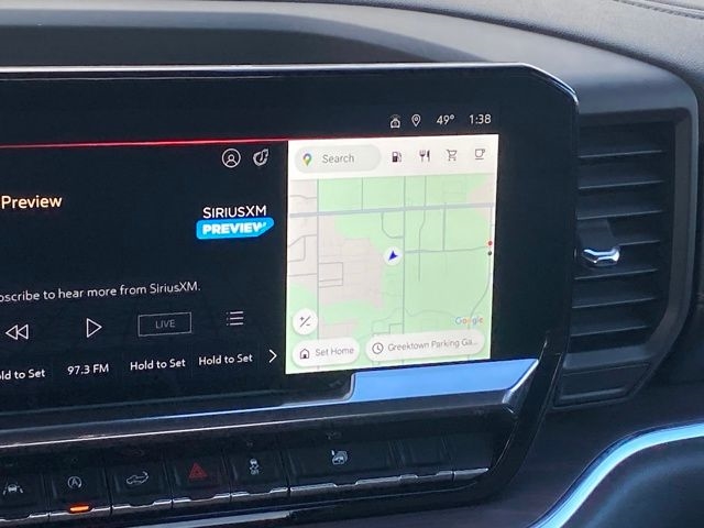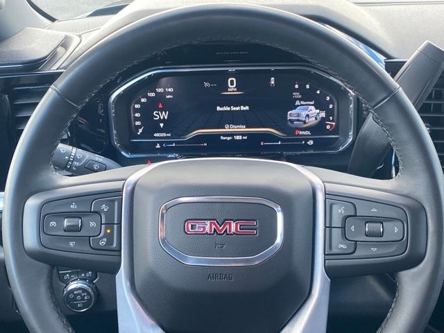 Navigation System, 10-Way Power Driver Seat Adjuster w/Lumbar, 10-Way Power Passenger Seat Adjuster w/Lumbar, 120-Volt Bed Mounted Power Outlet, 120-Volt Interior Power Outlet, 170 Amp Alternator, 2 Charge/Data USB Ports, 2 Type-C Charge-Only Rear USB Ports, 3.23 Rear Axle Ratio, 4-Wheel Disc Brakes, 6 Speakers, 6-Speaker Audio System Feature, ABS brakes, Air Conditioning, Alloy wheels, AM/FM radio: SiriusXM with 360L, Apple CarPlay/Android Auto, Auto High-beam Headlights, Auto-dimming door mirrors, Auto-dimming Rear-View mirror, Auto-Locking Rear Differential, Automatic Emergency Braking, Automatic temperature control, Auxiliary External Transmission Oil Cooler, Brake assist, Buckle to Drive, Bumpers: chrome, Chrome Header & Chrome Grille Insert Bars, Color-Keyed Carpeting Floor Covering, Compass, Deep-Tinted Glass, Delay-off headlights, Deleted 3 Years of OnStar Remote Access, Driver door bin, Driver Memory, Driver vanity mirror, Dual front impact airbags, Dual front side impact airbags, Electric Rear-Window Defogger, Electronic Stability Control, Following Distance Indicator, Forward Collision Alert, Front 40/20/40 Split-Bench Seat, Front anti-roll bar, Front Center Armrest w/Storage, Front dual zone A/C, Front fog lights, Front Frame-Mounted Black Recovery Hooks, Front License Plate Kit, Front Pedestrian Braking, Front Rain-Sensing Wipers, Front reading lights, Front wheel independent suspension, Fully automatic headlights, GMC Connected Access Capable, HD Rear Vision Camera, Heated door mirrors, Heated Driver & Front Outboard Passenger Seating, Heated front seats, Heated steering wheel, Hitch Guidance, Illuminated entry, IntelliBeam Automatic High Beam On/Off, Keyless Open & Start, Lane Keep Assist w/Lane Departure Warning, LED Cargo Area Lighting, Low tire pressure warning, Manual Tilt-Wheel & Telescoping Steering Column, Memory seat, Occupant sensing airbag, OnStar & GMC Connected Services Capable, Outside temperature display, Overhead airbag, Overhead console, Panic alarm, Passenger door bin, Passenger vanity mirror, Perf Leather-Appointed Front Outboard Seat Trim, Perimeter Lighting, Power Door Locks, Power door mirrors, Power driver seat, Power Front Passenger Windows w/Express Up/Down, Power Front Windows w/Driver Express Up/Down, Power passenger seat, Power Rear Windows w/Express Down, Power steering, Power windows, Preferred Equipment Group 4SA, Premium audio system: GMC Infotainment System, Push Button Start, Radio data system, Radio: Premium GMC Infotainment Audio System, Rain sensing wipers, Rear reading lights, Rear seat center armrest, Rear step bumper, Rear Wheelhouse Liners, Rear window defroster, Remote keyless entry, Remote Vehicle Starter System, Security system, SiriusXM w/360L, Speed control, Speed-sensing steering, Split folding rear seat, Standard Suspension Package, Steering Wheel Audio Controls, Steering wheel mounted audio controls, Tachometer, Telescoping steering wheel, Theft Deterrent System (Unauthorized Entry), Tilt steering wheel, Traction control, Trailering Package, Trip computer, Variably intermittent wipers, Voltmeter, Wheels: 18" x 8.5" 6-Spoke Machined Aluminum, Wi-Fi Hotspot Capable, Wireless Apple CarPlay/Wireless Android A