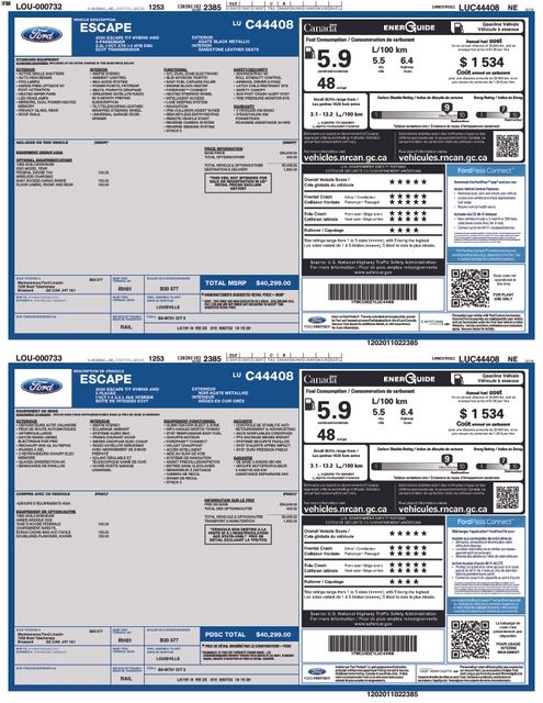 Powered by a 2.5L iVCT hybrid engine and all-wheel drive, this Escape Hybrid delivers an exceptional 43 MPG in the city and 37 MPG on the highway. With a sleek black exterior and premium Titanium trim, this Escape stands out on the road while providing the efficiency and capability you demand.