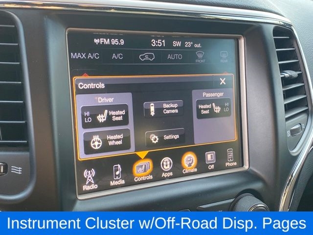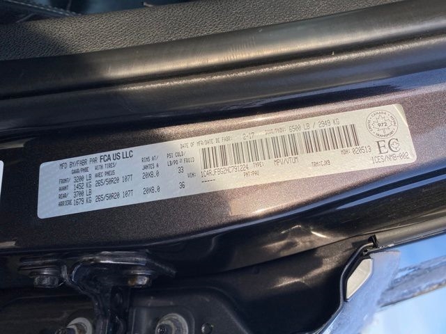 8.4" Touchscreen Display, GPS Antenna Input, Instrument Cluster w/Off-Road Disp. Pages, Integrated Voice Command w/Bluetooth, Nav-Capable! See Dealer for Details, ParkView Rear Back-Up Camera, Power Liftgate, Power Sunroof, Quick Order Package 23H, Radio: Uconnect 3C w/8.4" Display, Roadside Assistance & 9-1-1 Call, SiriusXM Satellite Radio, Uconnect Access, Wheels: 20" x 8.0" Satin Silver Aluminum, 1-Year SiriusXM Radio Service, 3.45 Rear Axle Ratio, 4-Wheel Disc Brakes, 6 Month Trial (Registration Required), 6 Speakers, ABS brakes, Air Conditioning, AM/FM radio: SiriusXM, Anti-whiplash front head restraints, Audio memory, Auto-dimming door mirrors, Auto-dimming Rear-View mirror, Automatic temperature control, Brake assist, Bumpers: body-color, Compass, Delay-off headlights, Driver door bin, Driver vanity mirror, Dual front impact airbags, Dual front side impact airbags, Electronic Stability Control, Engine Oil Cooler, For Details Visit DriveUconnect.com, For More Info, Call 800-643-2112, Four wheel independent suspension, Front anti-roll bar, Front Bucket Seats, Front Center Armrest w/Storage, Front dual zone A/C, Front fog lights, Front reading lights, Fully automatic headlights, Garage door transmitter, Heated door mirrors, Heated front seats, Heated rear seats, Heated steering wheel, Illuminated entry, Knee airbag, Leather Shift Knob, Leather Trimmed Bucket Seats, Low tire pressure warning, Memory seat, Normal Duty Suspension, Occupant sensing airbag, Outside temperature display, Overhead airbag, Overhead console, Panic alarm, Passenger door bin, Passenger vanity mirror, Power door mirrors, Power driver seat, Power passenger seat, Power steering, Power windows, Radio data system, Radio: Uconnect 3 w/5" Display, Rear anti-roll bar, Rear reading lights, Rear seat center armrest, Rear window defroster, Rear window wiper, Remote keyless entry, Roof rack: rails only, Security system, Speed control, Speed-Sensitive Wipers, Split folding rear seat, Spoiler, Steering wheel mounted audio controls, Tachometer, Telescoping steering wheel, Tilt steering wheel, Traction control, Trip computer, Turn signal indicator mirrors, Variably intermittent wipers, 8.4" Touchscreen Display, GPS Antenna Input, Instrument Cluster w/Off-Road Disp. Pages, Integrated Voice Command w/Bluetooth, Nav-Capable! See Dealer for Details, ParkView Rear Back-Up Camera, Power Liftgate, Power Sunroof, Quick Order Package 23H, Radio: Uconnect 3C w/8.4" Display, Roadside Assistance & 9-1-1 Call, SiriusXM Satellite Radio, Uconnect Access, Wheels: 20" x 8.0" Satin Silver Aluminum.