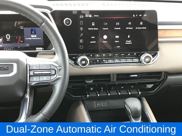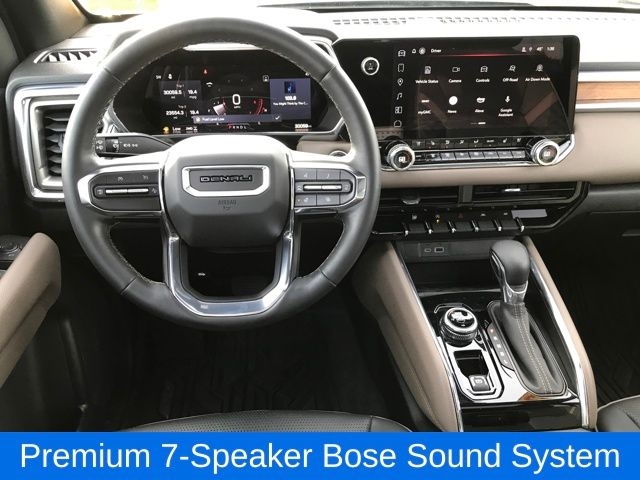 120-Volt Bed Mounted Power Outlet, 2 Rear USB Ports in Center Console (Charge-Only), 5" Rectangular Chrome Assist Steps, 6-Way Power Passenger Seat Adjuster, 8-Way Power Driver Seat Adjuster, Adaptive Cruise Control, Apple CarPlay/Android Auto, Automatic Locking Rear Differential, Blind Zone Steering Assist, Canyon Pro Safety, Driver & Front Passenger Illuminated Visors, Driver & Front Passenger Ventilated Seats, Driver Memory, Driver Seatback Map Pocket, Dual-Zone Automatic Air Conditioning, EZ-Lift & Lower Tailgate, Front LED Fog Lamps, HD Surround Vision, Heated Driver & Front Passenger Seats, Heated Power-Adjustable Outside Mirrors, Heated Steering Wheel, Inside Rear-View Auto-Dimming Mirror, Interior Overhead Courtesy Light w/Dual Reading Lamp, Manual Rear-Sliding Window, Multicolor 6.3" Diagonal Head-Up Display, MultiStow Tailgate, Power Driver Lumbar Control Seat Adjuster, Power Inner Sliding Glass Sunroof w/Manual Shade, Power Passenger Lumbar Control Seat Adjuster, Preferred Equipment Group 5SB, Premium 7-Speaker Bose Sound System, ProGrade Trailering System, Rear Center Fold-Down Armrest w/2 Cupholders, Rear Cross Traffic Braking, Rear of Console 120-Volt Power Outlet, Rear Pedestrian Alert, Rear-Window Electric Defogger, Remote Vehicle Starter System, Safety Alert Seat, Spray-On Bedliner, Tailgate Keyed Cylinder Lock, Tilt & Telescopic Manual Steering Column, Trailering App System, Trailering Package, Ultrasonic Rear Park Assist, Wireless Charging, 1st & 2nd Rows All-Weather Floor Liner (LPO), 2 1st Row USB Charge/Data Ports, 220 Amps Alternator, 3.42 Rear Axle Ratio, 4-Wheel Disc Brakes, 7 Speakers, ABS brakes, Air Conditioning, Alloy wheels, AM/FM radio: SiriusXM, Auto High-beam Headlights, Auto-dimming Rear-View mirror, Automatic Emergency Braking, Automatic Stop/Start, Automatic temperature control, Brake assist, Bumpers: body-color, Compass, Delay-off headlights, Driver door bin, Driver Mode Selector, Driver vanity mirror, Dual front impact airbags, Dual front side impact airbags, Electronic Stability Control, Following Distance Indicator, Forward Collision Alert, Front anti-roll bar, Front Bucket Seats, Front Center Armrest, Front dual zone A/C, Front fog lights, Front Passenger Seatback Map Pocket, Front Pedestrian & Bicyclist Braking, Front reading lights, Front wheel independent suspension, Genuine wood dashboard insert, Genuine wood door panel insert, Heads-Up Display, Heated door mirrors, Heated front seats, Heated steering wheel, Illuminated entry, Integrated Trailer Brake Controller, IntelliBeam Automatic High Beam On/Off, Lane Keep Assist w/Lane Departure Warning, Low tire pressure warning, Memory seat, Navigation System, Occupant sensing airbag, Outside temperature display, Overhead airbag, Overhead console, Panic alarm, Passenger door bin, Passenger vanity mirror, Perforated Leather-Appointed Seat Trim, Power door mirrors, Power driver seat, Power passenger seat, Power steering, Power windows, Radio data system, Radio: 11.3" Diagonal Premium GMC Infotainment Sys, Rear reading lights, Rear seat center armrest, Rear step bumper, Rear window defroster, Remote keyless entry, Security system, SiriusXM w/360L, Speed control, Speed-sensing steering, Split folding rear seat, Steering whee