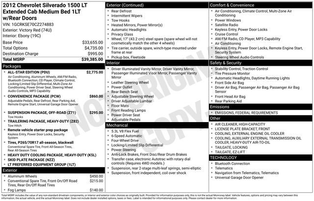 17" x 7.5" 5-Spoke Aluminum Wheels, All-Star Edition, AM/FM Stereo w/CD Player & MP3 Playback, Bluetooth® For Phone, Convenience Package, Dual-Zone Automatic Climate Control, Electric Rear-Window Defogger, Heavy Duty Cooling Package, Heavy-Duty Air-to-Oil External Engine Oil Cooler, Heavy-Duty Auxiliary External Transmission Oil Cooler, Heavy-Duty Trailering Package, Locking Tailgate, Power-Adjustable Pedals For Accelerator & Brake, Remote Vehicle Starter System, Steering Wheel Mounted Audio Controls, Ultrasonic Rear Parking Assist w/Audible Warning, 17" x 7.5" 6-Lug Chrome-Styled Steel Wheels, 18" x 8" Aluminum Wheels, 3.42 Rear Axle Ratio, 6 Speaker Audio System Feature, 6 Speakers, 6-Way Power Driver Seat Adjuster, ABS brakes, Air Conditioning, AM/FM radio: SiriusXM, AM/FM Stereo w/MP3 Compatible CD Player, Body-Colored Bodyside Moldings, Bodyside moldings, Bumpers: chrome, CD player, Chrome Grille Surround, Color-Keyed Carpeting w/Rubberized Vinyl Floormats, Compass, Delay-off headlights, Driver & Front Passenger Illuminated Visor Mirrors, Driver door bin, Driver vanity mirror, Driver-Side Manual Lumbar Control Seat Adjuster, Dual front impact airbags, Dual front side impact airbags, Electronic Autotrac Transfer Case, Electronic Stability Control, Emergency communication system: OnStar Directions & Connections, EZ-Lift Tailgate, Front 40/20/40 Split-Bench Seat, Front anti-roll bar, Front Center Armrest w/Storage, Front Halogen Fog Lamps, Front License Plate Bracket, Front reading lights, Front wheel independent suspension, Fully automatic headlights, Heated door mirrors, Heated Power-Adjustable Black Outside Mirrors, Heavy-Duty Handling/Trailering Suspension Package, Heavy-Duty Rear Automatic Locking Differential, Heavy-Duty Trailering Package (Retail), Illuminated entry, Leather-Wrapped Steering Wheel, Low tire pressure warning, LT1 Equipment Group, Occupant sensing airbag, Off-Road Suspension Package, Outside temperature display, Overhead airbag, Overhead console, Panic alarm, Passenger door bin, Passenger vanity mirror, Power Door Locks w/Remote Keyless Entry, Power door mirrors, Power steering, Power windows, Power Windows w/Driver Express-Down, Premium Cloth Seat Trim, Radio data system, Rear Access Door Power Windows, Rear reading lights, Rear step bumper, Remote keyless entry, Remote Keyless Entry w/2 Transmitters, Security system, SIRIUSXM Satellite Radio, Skid Plate Package, Solar-Ray Deep-Tinted Glass, Speed control, Split folding rear seat, Tachometer, Tilt steering wheel, Traction control, Universal Home Remote, Variably intermittent wipers, Voltmeter, 17" x 7.5" 5-Spoke Aluminum Wheels, All-Star Edition, AM/FM Stereo w/CD Player & MP3 Playback, Bluetooth® For Phone, Convenience Package, Dual-Zone Automatic Climate Control, Electric Rear-Window Defogger, Heavy Duty Cooling Package, Heavy-Duty Air-to-Oil External Engine Oil Cooler, Heavy-Duty Auxiliary External Transmission Oil Cooler, Heavy-Duty Trailering Package, Locking Tailgate, Power-Adjustable Pedals For Accelerator & Brake, Remote Vehicle Starter System, Steering Wheel Mounted Audio Controls, Ultrasonic Rear Parking Assist w/Audible Warning.