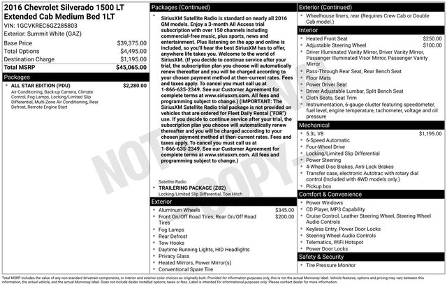 10-Way Power Driver's Seat Adjuster, 110-Volt AC Power Outlet, 150 Amp Alternator, 3.42 Rear Axle Ratio, 4-Wheel Disc Brakes, 4.2" Diagonal Color Display Driver Info Center, 40/20/40 Front Split Bench Seat, 6 Speaker Audio System, 6 Speakers, ABS brakes, Air Conditioning, All Star Edition, Alloy wheels, AM/FM radio: SiriusXM, Auxiliary External Transmission Oil Cooler, Bluetooth® For Phone, Body Color Bodyside Moldings, Body Color Door Handles, Body-Color Mirror Caps, Body-Color Power Adjustable Heated Outside Mirrors, Bodyside moldings, Brake assist, CD player, Cloth Seat Trim, Color-Keyed Carpeting w/Rubberized Vinyl Floor Mats, Compass, Deep-Tinted Glass, Delay-off headlights, Driver & Front Passenger Illuminated Vanity Mirrors, Driver door bin, Driver vanity mirror, Dual front impact airbags, Dual front side impact airbags, Dual-Zone Automatic Climate Control, Electric Rear-Window Defogger, Electronic Stability Control, Emergency communication system: OnStar Guidance, EZ Lift & Lower Tailgate, Front anti-roll bar, Front Center Armrest w/Storage, Front Chrome Bumper, Front reading lights, Front wheel independent suspension, Fully automatic headlights, HD Radio, Heated door mirrors, Heated Driver & Front Passenger Seats, Heavy-Duty Rear Locking Differential, High-Intensity Discharge Headlights, Illuminated entry, Leather Wrapped Steering Wheel w/Cruise Controls, LED Cargo Box Lighting, Low tire pressure warning, Manual Tilt Wheel Steering Column, Manual Tilt/Telescoping Steering Column, Occupant sensing airbag, OnStar 6 Months Guidance Plan, OnStar w/4G LTE, Outside temperature display, Overhead airbag, Overhead console, Panic alarm, Passenger door bin, Passenger vanity mirror, Power door mirrors, Power steering, Power windows, Power Windows w/Driver Express Up, Premium audio system: Chevrolet MyLink, Radio data system, Radio: AM/FM 8" Diagonal Color Touch Screen, Rear 60/40 Folding Bench Seat (Folds Up), Rear Chrome Bumper, Rear reading lights, Rear step bumper, Rear Vision Camera w/Dynamic Guide Lines, Rear Wheelhouse Liners, Remote Keyless Entry, Remote keyless entry, Remote Locking Tailgate, Remote Vehicle Starter System, Single Slot CD/MP3 Player, SiriusXM Satellite Radio, Speed control, Speed-sensing steering, Split folding rear seat, Steering Wheel Audio Controls, Steering wheel mounted audio controls, Tachometer, Theft Deterrent System (Unauthorized Entry), Thin Profile LED Fog Lamps, Tilt steering wheel, Traction control, Trailering Package, Trip computer, Variably intermittent wipers, Voltmeter.