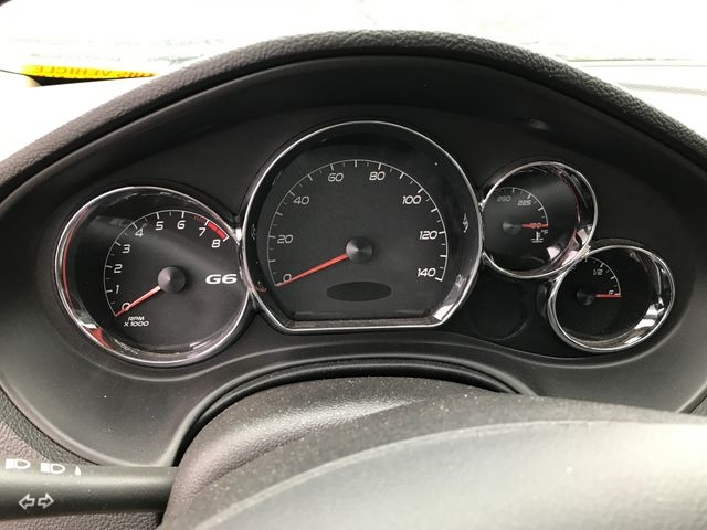 17" Custom 5-Spoke High-Vent Wheels, 4-Wheel Disc Brakes, 6 Speakers, ABS brakes, Air Conditioning, Alloy wheels, AM/FM radio, AM/FM Stereo w/CD Player/Seek & Scan, Body-Color Bodyside Moldings, Bumpers: body-color, CD player, Delay-off headlights, Driver door bin, Driver vanity mirror, Dual front impact airbags, Dual front side impact airbags, Emergency communication system: OnStar Safe & Sound, Four wheel independent suspension, Front & Rear Carpeted Floormats, Front anti-roll bar, Front Bucket Seats, Front Center Armrest, Front Reclining 45/45 Bucket Seats, Fully automatic headlights, G6 Preferred Package, Illuminated entry, Leather-Wrapped Brake Handle, Leather-Wrapped Shift Knob, Leather-Wrapped Steering Wheel, Low tire pressure warning, Occupant sensing airbag, Outside temperature display, Overhead airbag, Panic alarm, Passenger door bin, Passenger vanity mirror, Power door mirrors, Power Driver 6-Way Seat Adjuster, Power driver seat, Power steering, Power windows, Radio data system, Rear anti-roll bar, Rear window defroster, Remote keyless entry, Remote Vehicle Starter System, Security system, Simulated Walnut Burl Trim Accents, Speed control, Speed-sensing steering, Speed-Sensitive Wipers, Split folding rear seat, Steering Wheel Mounted Audio Controls, Tachometer, Telescoping steering wheel, Tilt steering wheel, Traction control, Trip computer, Trunk Cargo Nets, Variably intermittent wipers, Vortex Cloth Seat Trim.