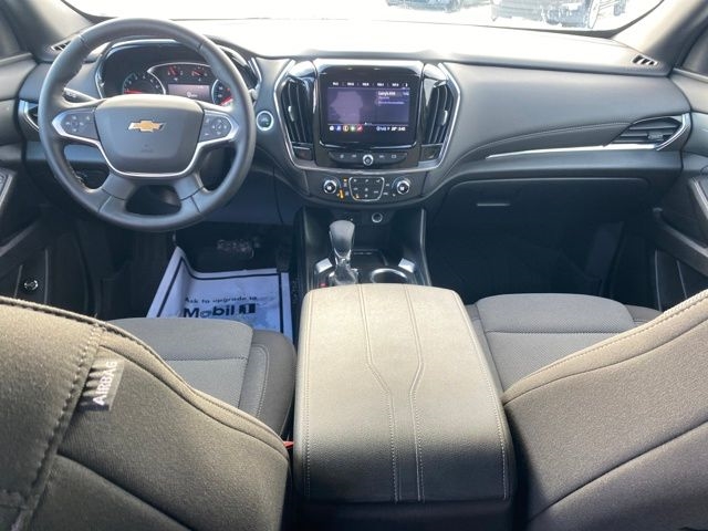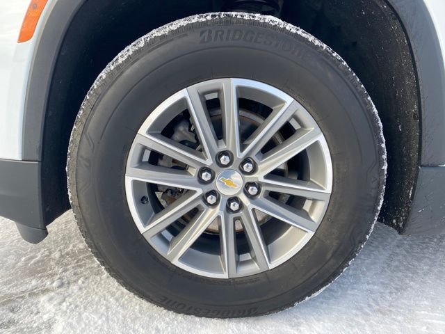 1st & 2nd Row All-Weather Floor Liner (LPO), 2-Way Manual Front Passenger Seat Adjuster, 3.49 Axle Ratio, 3rd Row All-Weather Floor Liner (LPO), 3rd row seats: split-bench, 4-Wheel Disc Brakes, 6 Speakers, 6-Speaker Audio System Feature, 8-Way Power Driver Seat Adjuster, ABS brakes, Air Conditioning, Alloy wheels, AM/FM radio: SiriusXM, Apple CarPlay/Android Auto, Auto High-beam Headlights, Automatic temperature control, Black Bowtie, Black Roof Rails, Brake assist, Bumpers: body-color, Compass, Delay-off headlights, Driver door bin, Driver vanity mirror, Dual front impact airbags, Dual front side impact airbags, Electronic Stability Control, Emergency communication system, Exterior Parking Camera Rear, Floor Liner Package (LPO), Four wheel independent suspension, Front anti-roll bar, Front Bucket Seats, Front Center Armrest, Front dual zone A/C, Front reading lights, Fully automatic headlights, Garage door transmitter, Heated door mirrors, Heated Driver & Front Passenger Seats, Heated front seats, Heavy-Duty Cooling System, Hitch Guidance w/Hitch View, Illuminated entry, Integrated Cargo Liner (LPO), Leather steering wheel, Low tire pressure warning, Not Equipped w/Rear Park Assist (060), Occupant sensing airbag, Outside temperature display, Overhead airbag, Overhead console, Panic alarm, Passenger door bin, Passenger vanity mirror, Power door mirrors, Power Driver Lumbar Control, Power driver seat, Power Liftgate, Power steering, Power windows, Preferred Equipment Group 1LT, Premium Cloth Seat Trim, Radio data system, Radio: Chevrolet Infotainment 3 Plus System, Rear air conditioning, Rear anti-roll bar, Rear reading lights, Rear window defroster, Rear window wiper, Remote keyless entry, Security system, SiriusXM w/360L, Speed control, Speed-sensing steering, Spoiler, Steering wheel mounted audio controls, Tachometer, Telescoping steering wheel, Tilt steering wheel, Traction control, Trailering Assist Guidelines, Trailering Equipment, Trip computer, Turn signal indicator mirrors, Variably intermittent wipers, Voltmeter, Wheels: 18" Bright Silver-Painted Aluminum.