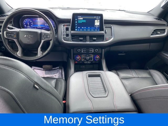 2nd Row Pwr Release 60/40 Split-Folding Bench Seat, 3rd Row 60/40 Power-Folding Split-Bench, Driver Alert Package, HD Surround Vision, Heated 2nd Row Outboard Seats, Heated Steering Wheel, Lane Change Alert w/Side Blind Zone Alert, Luxury Package, Memory Settings, Navigation System, Outside Heated Power-Adjustable Mirrors, Power Tilt & Telescopic Steering Column, Rear Cross Traffic Alert, Rear Pedestrian Alert, 10-Way Power Driver & Passenger Seat Adjusters, 1st & 2nd Row Color-Keyed Carpeted Floor Mats, 3.23 Rear Axle Ratio, 3rd row seats: split-bench, 4-Wheel Disc Brakes, 9 Speakers, ABS brakes, Air Conditioning, Alloy wheels, AM/FM radio: SiriusXM with 360L, Apple CarPlay/Android Auto, Auto High-beam Headlights, Auto-Dimming Inside Rear-View Mirror, Auto-dimming Rear-View mirror, Automatic Stop/Start, Automatic temperature control, Bose 9-Speaker Stereo Audio System Feature, Brake assist, Bright Front & Rear Door Sill Plates, Bumpers: body-color, Color-Keyed Carpeting Floor Covering, Compass, Delay-off headlights, Driver & Front Outboard Passenger Airbags, Driver door bin, Driver vanity mirror, Dual front impact airbags, Dual front side impact airbags, Dual-Pane Power Panoramic Sunroof, Electronic Stability Control, Emergency communication system: OnStar and Chevrolet connected services capable, Enhanced Driver Information Center, Floor Console w/Storage Area, Four wheel independent suspension, Front & Rear Park Assist, Front anti-roll bar, Front Bucket Seats, Front Center Armrest, Front dual zone A/C, Front reading lights, Fully automatic headlights, Garage door transmitter, Hands-Free Rear Power Programmable Liftgate, Heated door mirrors, Heated Driver & Front Passenger Seats, Heated front seats, Illuminated entry, Infotainment Display, Leather steering wheel, Leather-Wrapped Steering Wheel, LED Daytime Running Lamps, Low tire pressure warning, Memory seat, Memory Settings For Driver, Not Equipped w/Front & Rear Park Assist, Not Equipped w/Steering Column Lock, Occupant sensing airbag, Outside temperature display, Overhead airbag, Overhead console, Panic alarm, Passenger door bin, Passenger vanity mirror, Perforated Leather Seating Surfaces, Power door mirrors, Power driver seat, Power Liftgate, Power passenger seat, Power Release 2nd Row Bucket Seats, Power steering, Power windows, Preferred Equipment Group 1SP, Premium audio system: Chevrolet Infotainment 3 Premium, Premium Smooth Ride Suspension, Radio: Chevrolet Infotainment 3 Premium System, Rain sensing wipers, Rear air conditioning, Rear anti-roll bar, Rear reading lights, Rear seat center armrest, Rear window defroster, Rear window wiper, Remote keyless entry, Remote Start, Roof rack: rails only, Security system, SiriusXM Radio w/360L, Speed control, Speed-sensing steering, Split folding rear seat, Spoiler, Start/Stop System Disable Button, Steering wheel mounted audio controls, Tachometer, Telescoping steering wheel, Tilt steering wheel, Traction control, Trip computer, Universal Home Remote, Variably intermittent wipers, Voltmeter, Wheel Locks (Set of 4) (LPO), Wheels: 22" x 9" Bright Machined, Wireless Charging, 2nd Row Pwr Release 60/40 Split-Folding Bench Seat, 3rd Row 60/40 Power-Folding Split-Bench, Driver Alert Package, HD Surround Visi