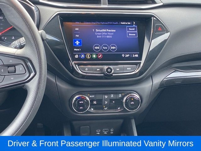 1 Type-A & 1 Type-C USB Charging-Only Ports, 120-Volt Power Outlet, 8" Diagonal Color Touchscreen Display, Convenience Package, Driver & Front Passenger Illuminated Vanity Mirrors, Driver Confidence Package, Inside Rear-View Auto-Dimming Mirror, Lane Change Alert w/Side Blind Zone Alert, Rear Cross Traffic Alert, Rear Park Assist, Single-Zone Auto Climate Control Air Conditioning, 2-Way Adjustable Front Head Restraints, 2-Way Power Driver Lumbar Seat Adjuster, 3.17 Axle Ratio, 4-Way Manual Front Passenger Seat Adjuster, 4-Wheel Disc Brakes, 6 Speakers, 6-Speaker Audio System Feature w/Amplifier, 7" Diagonal Color Touchscreen, 8-Way Power Driver Seat Adjuster, ABS brakes, Air Conditioning, Alloy wheels, AM/FM radio: SiriusXM, Auto High-beam Headlights, Brake assist, Bumpers: body-color, Cabin Humidity Sensor, Cloth Seat Trim, Compass, Delay-off headlights, Driver door bin, Driver vanity mirror, Dual front impact airbags, Dual front side impact airbags, Electronic Stability Control, Emergency communication system: OnStar and Chevrolet connected services capable, Exterior Parking Camera Rear, Flat-Folding Front Passenger Seatback, Front anti-roll bar, Front Bucket Seats, Front Center Armrest, Front fog lights, Front License Plate Bracket, Front reading lights, Front wheel independent suspension, Fully automatic headlights, Heated door mirrors, Heated Driver & Front Passenger Seats, Heated front seats, Illuminated entry, Knee airbag, Low tire pressure warning, Not Equipped w/Rear Park Assist (060), Occupant sensing airbag, Overhead airbag, Overhead console, Panic alarm, Passenger door bin, Passenger vanity mirror, Power door mirrors, Power driver seat, Power steering, Power windows, Preferred Equipment Group 1LT, Radio data system, Radio: Chevrolet Infotainment 3 System, Rear side impact airbag, Rear window defroster, Rear window wiper, Remote keyless entry, Ride & Handling Suspension, Security system, SiriusXM Radio, Speed control, Split folding rear seat, Spoiler, Steering wheel mounted audio controls, Tachometer, Telescoping steering wheel, Tilt steering wheel, Traction control, Trip computer, Variably intermittent wipers, Wheels: 17" High Gloss Black Machined Aluminum, Wireless Apple CarPlay/Android Auto, 1 Type-A & 1 Type-C USB Charging-Only Ports, 120-Volt Power Outlet, 8" Diagonal Color Touchscreen Display, Convenience Package, Driver & Front Passenger Illuminated Vanity Mirrors, Driver Confidence Package, Inside Rear-View Auto-Dimming Mirror, Lane Change Alert w/Side Blind Zone Alert, Rear Cross Traffic Alert, Rear Park Assist, Single-Zone Auto Climate Control Air Conditioning.