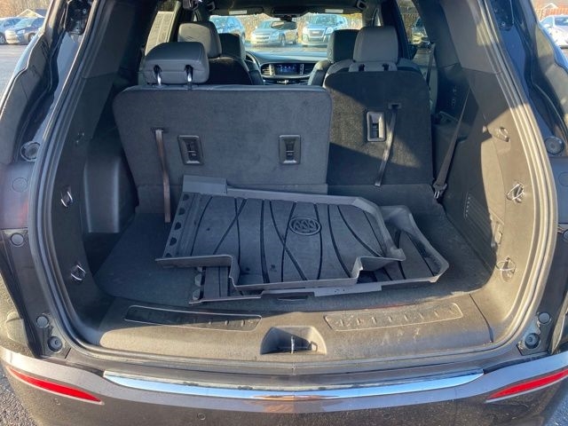 5000lbs Trailering Package, Heavy-Duty Cooling System, Hitch Guidance, Hitch Guidance w/Hitch View, 18" Aluminum Wheels, 3.49 Axle Ratio, 3rd row seats: split-bench, 4-Wheel Disc Brakes, 6 Speakers, 6-Speaker Audio System Feature, 6-Way Power Front Passenger Seat Adjuster, 7-Passenger Seating, 8-Way Power Driver Seat Adjuster, ABS brakes, Air Conditioning, Alloy wheels, AM/FM radio: SiriusXM with 360L, Auto High-beam Headlights, Auto-dimming door mirrors, Auto-dimming Rear-View mirror, Automatic temperature control, Brake assist, Bumpers: body-color, Compass, Delay-off headlights, Driver door bin, Driver vanity mirror, Dual front impact airbags, Dual front side impact airbags, Electronic Stability Control, Emergency communication system: OnStar and Buick connected services capable, Four wheel independent suspension, Front & Rear Park Assist, Front anti-roll bar, Front Bucket Seats, Front Center Armrest, Front dual zone A/C, Front reading lights, Fully automatic headlights, Garage door transmitter, Heated door mirrors, Heated Driver & Front Passenger Seats, Heated front seats, Heated Steering Wheel, Heated steering wheel, Illuminated entry, Leather steering wheel, Low tire pressure warning, Not Equipped w/Front & Rear Park Assist, Occupant sensing airbag, Outside temperature display, Overhead airbag, Overhead console, Panic alarm, Passenger door bin, Passenger vanity mirror, Perforated Leather-Appointed Seat Trim, Power door mirrors, Power Driver Lumbar Control Seat Adjuster, Power driver seat, Power Liftgate, Power Passenger Lumbar Control Seat Adjuster, Power passenger seat, Power steering, Power windows, Preferred Equipment Group 1SL, Premium audio system: Buick Infotainment System, Radio data system, Radio: Buick Infotainment System AM/FM Stereo, Rear air conditioning, Rear anti-roll bar, Rear reading lights, Rear window defroster, Rear window wiper, Remote keyless entry, Roof rack: rails only, Security system, SiriusXM w/360L, Speed control, Speed-sensing steering, Spoiler, Steering wheel mounted audio controls, Tachometer, Telescoping steering wheel, Tilt steering wheel, Traction control, Trip computer, Turn signal indicator mirrors, Variably intermittent wipers, Voltmeter, Wireless Apple CarPlay/Wireless Android Auto, 5000lbs Trailering Package, Heavy-Duty Cooling System, Hitch Guidance, Hitch Guidance w/Hitch View.