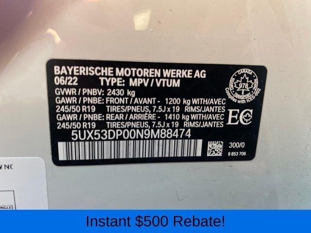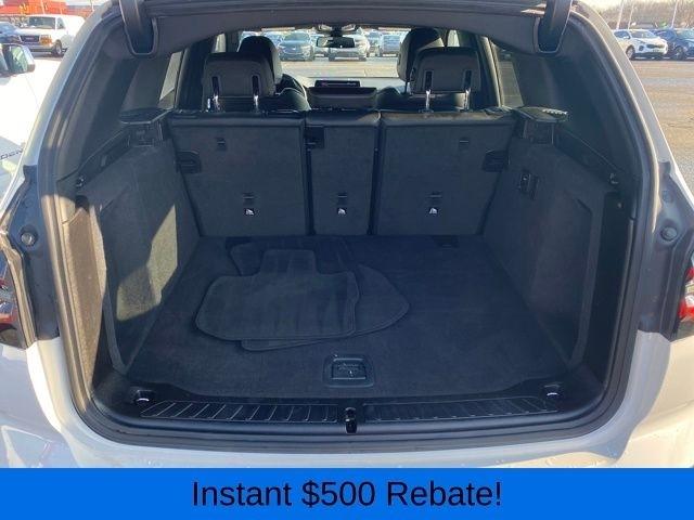 12 Speakers, 3.385 Axle Ratio, 4-Wheel Disc Brakes, ABS brakes, Air Conditioning, Alloy wheels, AM/FM Radio, AM/FM radio: SiriusXM with 360L, Apple CarPlay & Android Auto Compatibility, Auto High-beam Headlights, Auto-dimming door mirrors, Auto-dimming Rear-View mirror, Automatic temperature control, BMW Assist eCall, BMW TeleServices, Brake assist, Bumpers: body-color, Connected Package Pro, ConnectedDrive Services, Delay-off headlights, Driver door bin, Driver vanity mirror, Dual front impact airbags, Dual front side impact airbags, Electronic Stability Control, Emergency communication system: BMW Assist eCall, Enhanced Bluetooth, Exterior Parking Camera Rear, Four wheel independent suspension, Front anti-roll bar, Front Bucket Seats, Front Center Armrest, Front dual zone A/C, Front reading lights, Fully automatic headlights, Garage door transmitter, Genuine wood dashboard insert, Genuine wood door panel insert, Heated door mirrors, Hi-Fi Sound System, Illuminated entry, Knee airbag, Low tire pressure warning, Memory seat, Navigation, Navigation System, Occupant sensing airbag, Outside temperature display, Overhead airbag, Panic alarm, Passenger door bin, Passenger vanity mirror, Perforated SensaTec Upholstery, Power door mirrors, Power driver seat, Power Front Seats, Power Liftgate, Power passenger seat, Power steering, Power windows, Radio data system, Rain sensing wipers, Rear air conditioning, Rear anti-roll bar, Rear reading lights, Rear seat center armrest, Rear window defroster, Rear window wiper, Remote keyless entry, Roof rack: rails only, Security system, SiriusXM w/360L, Speed control, Speed-sensing steering, Speed-Sensitive Wipers, Split folding rear seat, Spoiler, Sport Seats, Sport steering wheel, Steering wheel mounted audio controls, Tachometer, Telescoping steering wheel, Tilt steering wheel, Traction control, Trip computer, Turn signal indicator mirrors, Variably intermittent wipers, Wheels: 19" x 7.5" Y-Spoke (Style 693), WiFi Hotspot.