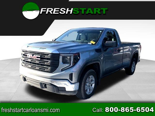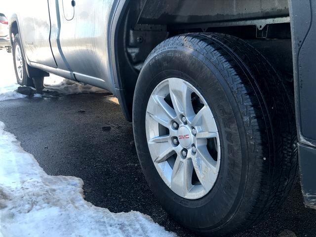 10-Way Power Driver Seat Adjuster w/Lumbar, 120-Volt Bed Mounted Power Outlet, 120-Volt Instrument Panel Power Outlet, 170 Amp Alternator, 2 Charge/Data USB Ports, 2 Speakers, 2-Speaker Audio System Feature, 220 Amp Alternator, 4-Way Manual Driver Seat Adjuster, 4-Way Manual Passenger Seat Adjuster, 4-Wheel Disc Brakes, ABS brakes, Air Conditioning, AM/FM radio, Apple CarPlay/Android Auto, Auto High-beam Headlights, Auto-Locking Rear Differential, Automatic Emergency Braking, Auxiliary External Transmission Oil Cooler, Brake assist, Buckle to Drive, Bumpers: chrome, Chrome Header w/Flat Black Grille Insert Bars, Color-Keyed Carpeting Floor Covering, Convenience Package, Cruise Control, Deep-Tinted Glass, Delay-off headlights, Driver door bin, Dual front impact airbags, Dual front side impact airbags, Electric Rear-Window Defogger, Electrical Steering Column Lock, Electronic Stability Control, External Engine Oil Cooling, EZ Lift Power Lock & Release Tailgate, Following Distance Indicator, Forward Collision Alert, Front 40/20/40 Split-Bench Seat, Front anti-roll bar, Front Center Armrest w/Storage, Front Frame-Mounted Black Recovery Hooks, Front Pedestrian Braking, Front reading lights, Front Rubberized-Vinyl Floor Mats, Front wheel independent suspension, Fully automatic headlights, HD Rear Vision Camera, Heated door mirrors, Hitch Guidance, Illuminated entry, Integrated Trailer Brake Controller, IntelliBeam Automatic High Beam On/Off, Lane Keep Assist w/Lane Departure Warning, LED Cargo Area Lighting, Low tire pressure warning, Manual Tilt-Wheel/Telescoping Steering Col (DISC), Not Equipped w/Steering Column Lock, Occupant sensing airbag, Outside temperature display, Overhead airbag, Overhead console, Panic alarm, Passenger door bin, Passenger vanity mirror, Power Door Locks, Power door mirrors, Power Front Windows w/Driver Express Up/Down, Power Front Windows w/Passenger Express Down, Power steering, Power windows, Preferred Equipment Group 1SA, Premium audio system: GMC Infotainment System, Pro Value Package, Push Button Start, Radio data system, Radio: GMC Infotainment Audio System, Rear reading lights, Rear step bumper, Remote Keyless Entry, Remote keyless entry, Solar Absorbing Tinted Glass, Speed-sensing steering, Standard Suspension Package, Tachometer, Tilt steering wheel, Traction control, Trailering Package, Trip computer, Variably intermittent wipers, Vinyl Seat Trim, Voltmeter, Wheels: 17" x 8" Bright Silver Painted Aluminum, Wheels: 17" x 8" Silver Painted Steel.