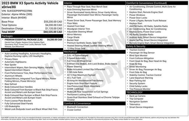 Whether you're looking for a versatile family hauler, a capable all-weather companion, or a premium driving experience, this 2023 BMW X3 xDrive30i is the perfect choice. With its impressive features, exceptional performance, and exceptional value, this SUV is sure to exceed your expectations.