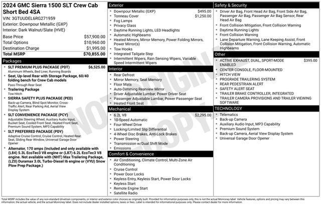 This Sierra 1500 also comes equipped with the ProGrade Trailering System, Sierra Safety Plus Package, SLT Convenience Package, and SLT Preferred Package, providing you with a comprehensive suite of advanced safety and convenience technologies. Standout features include the Navigation System, Premium Bose 7-Speaker Sound System, Adaptive Cruise Control, and Wireless Charging, among many others.
