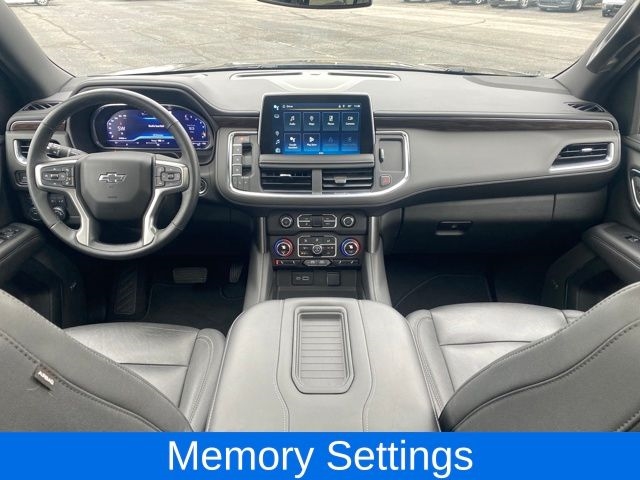 2nd Row Pwr Release 60/40 Split-Folding Bench Seat, 3rd Row 60/40 Power-Folding Split-Bench Seat, Driver Alert Package, HD Surround Vision, Heated 2nd Row Outboard Seats, Heated Steering Wheel, Lane Change Alert w/Side Blind Zone Alert, Luxury Package, Memory Settings, Navigation System, Outside Heated Power-Adjustable Mirrors, Power Tilt & Telescopic Steering Column, Rear Cross Traffic Alert, Rear Pedestrian Alert, 10-Way Power Driver & Passenger Seat Adjusters, 1st & 2nd Row Color-Keyed Carpeted Floor Mats, 2-Speed Active Electronic AutoTrac Transfer Case, 3.23 Rear Axle Ratio, 3rd row seats: split-bench, 4-Wheel Disc Brakes, 9 Speakers, ABS brakes, Air Conditioning, Alloy wheels, AM/FM radio: SiriusXM with 360L, Apple CarPlay/Android Auto, Auto High-beam Headlights, Auto-Dimming Inside Rear-View Mirror, Auto-dimming Rear-View mirror, Automatic temperature control, Black Tubular Assist Steps, Bose 9-Speaker Stereo Audio System Feature, Brake assist, Bright Front & Rear Door Sill Plates, Bumpers: body-color, Color-Keyed Carpeting Floor Covering, Compass, Delay-off headlights, Driver & Front Outboard Passenger Airbags, Driver door bin, Driver vanity mirror, Dual front impact airbags, Dual front side impact airbags, Dual-Pane Power Panoramic Sunroof, Electronic Stability Control, Emergency communication system: OnStar and Chevrolet connected services capable, Enhanced Driver Information Center, Floor Console w/Storage Area, Four wheel independent suspension, Front anti-roll bar, Front Bucket Seats, Front Center Armrest, Front dual zone A/C, Front High-Approach Angle Fascia, Front High-Back Reclining Bucket Seats, Front reading lights, Fully automatic headlights, Garage door transmitter, Hands-Free Rear Power Programmable Liftgate, Heated door mirrors, Heated Driver & Front Passenger Seats, Heated front seats, Hill Descent Control, Illuminated entry, Infotainment Display, Leather-Appointed Seat Trim, LED Daytime Running Lamps, Low tire pressure warning, Memory seat, Memory Settings for Driver, Occupant sensing airbag, Outside temperature display, Overhead airbag, Overhead console, Panic alarm, Passenger door bin, Passenger vanity mirror, Power door mirrors, Power driver seat, Power Liftgate, Power passenger seat, Power Release 2nd Row Bucket Seats, Power steering, Power windows, Preferred Equipment Group 2Z7, Premium audio system: Chevrolet Infotainment 3 Premium, Premium Smooth Ride Suspension, Radio: Chevrolet Infotainment 3 Premium System, Rain sensing wipers, Rear air conditioning, Rear anti-roll bar, Rear reading lights, Rear seat center armrest, Rear window defroster, Rear window wiper, Red Horizontal-Mounted Recovery Hooks, Remote keyless entry, Remote Start, Roof rack: rails only, Security system, SiriusXM Radio w/360L, Speed control, Speed-sensing steering, Split folding rear seat, Spoiler, Steering wheel mounted audio controls, Tachometer, Telescoping steering wheel, Tilt steering wheel, Traction control, Trip computer, Universal Home Remote, Variably intermittent wipers, Voltmeter, Wheels: 20" x 9" Machined Aluminum, Wireless Charging, Wrapped Steering Wheel, 2nd Row Pwr Release 60/40 Split-Folding Bench Seat, 3rd Row 60/40 Power-Folding Split-Bench Seat, Driver Alert Package, HD Surround Vision,