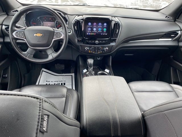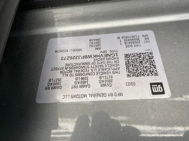 1st & 2nd Row All-Weather Floor Liner (LPO), 3.49 Axle Ratio, 3rd Row All-Weather Floor Liner (LPO), 3rd row seats: split-bench, 4-Wheel Disc Brakes, 6 Speakers, 6-Speaker Audio System Feature, 6-Way Power Front Passenger Seat, 8-Way Power Driver Seat Adjuster, ABS brakes, Air Conditioning, Alloy wheels, AM/FM radio: SiriusXM with 360L, Apple CarPlay/Android Auto, Auto High-beam Headlights, Automatic temperature control, Black Roof Rails, Brake assist, Bumpers: body-color, Cargo Package (LPO), Compass, Delay-off headlights, Driver door bin, Driver vanity mirror, Dual front impact airbags, Dual front side impact airbags, Electronic Stability Control, Emergency communication system, Exterior Parking Camera Rear, Floor Liner Package (LPO), Four wheel independent suspension, Front anti-roll bar, Front Bucket Seats, Front Center Armrest, Front dual zone A/C, Front Passenger 2-Way Power Lumbar, Front reading lights, Fully automatic headlights, Garage door transmitter, Heated door mirrors, Heated Driver & Front Passenger Seats, Heated front seats, Heated steering wheel, Illuminated entry, Integrated Cargo Liner (LPO), Leather steering wheel, Leather-Appointed Seat Trim, Low tire pressure warning, Not Equipped w/Rear Park Assist (060), Occupant sensing airbag, Outside temperature display, Overhead airbag, Overhead console, Panic alarm, Passenger door bin, Passenger vanity mirror, Power door mirrors, Power Driver Lumbar Control, Power driver seat, Power Liftgate, Power passenger seat, Power steering, Power windows, Preferred Equipment Group 3LT, Premium audio system: Chevrolet Infotainment 3 Plus, Radio data system, Radio: Chevrolet Infotainment 3 Plus System, Rear air conditioning, Rear anti-roll bar, Rear reading lights, Rear window defroster, Rear window wiper, Remote keyless entry, Retractable Cargo Shade, Security system, SiriusXM w/360L, Speed control, Speed-sensing steering, Spoiler, Steering wheel mounted audio controls, Tachometer, Telescoping steering wheel, Tilt steering wheel, Traction control, Trip computer, Turn signal indicator mirrors, Variably intermittent wipers, Vertical Cargo Net (LPO), Voltmeter, Wheels: 18" Bright Silver-Painted Aluminum.
