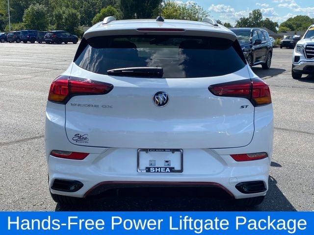 Body Color Rocker Moldings, Body-Color Bodyside Moldings, Custom Grille w/Red Accents, Hands Free Power Liftgate, Hands-Free Power Liftgate Package, Lane Change Alert w/Side Blind Zone Alert, Rear Cross Traffic Alert, Red Front & Rear Bumper Protective Molding, Safety Package II, Sport Front Bumper w/Red Accents, Sport Rear Bumper w/Red Accents, Sport Touring Badge, Sport Touring Package, Wheels: 18" Alum w/Dark Android High Gloss Inserts, 18" Machined Aluminum Wheels, 2 USB Ports w/Auxiliary Input Jack, 2-Way Power Driver Lumbar Control, 3 Years of OnStar & Connected Services Plan (DISC), 4-Way Manual Passenger Seat Adjuster, 4-Wheel Disc Brakes, 5.45 Final Drive Axle Ratio, 6 Speakers, 8-Way Power Driver Seat Adjuster, ABS brakes, Air Conditioning, Alloy wheels, AM/FM radio: SiriusXM, Auto High-beam Headlights, Automatic temperature control, Brake assist, Bumpers: body-color, Cloth w/Leatherette Seat Trim, Compass, Delay-off headlights, Driver door bin, Driver vanity mirror, Dual front impact airbags, Dual front side impact airbags, Electric Auxiliary Heating/Defroster, Electronic Stability Control, Emergency communication system: OnStar and Buick connected services capable, Enhanced Performance 6-Speaker System, Front anti-roll bar, Front Bucket Seats, Front Center Armrest, Front dual zone A/C, Front fog lights, Front License Plate Bracket, Front reading lights, Front wheel independent suspension, Fully automatic headlights, Heated door mirrors, Heated Driver & Front Passenger Seats, Heated front seats, Illuminated entry, Knee airbag, Low tire pressure warning, Not Equipped w/Driver & Fr Passenger Heated Seats, Occupant sensing airbag, Outside temperature display, Overhead airbag, Overhead console, Panic alarm, Passenger door bin, Passenger vanity mirror, Power door mirrors, Power driver seat, Power steering, Power windows, Preferred Equipment Group 1SD, Radio data system, Radio: 8" Diagonal Buick Infotainment System, Rear reading lights, Rear seat center armrest, Rear side impact airbag, Rear window defroster, Rear window wiper, Remote keyless entry, Ride & Handling Suspension, Security system, SiriusXM Radio, Speed control, Speed-sensing steering, Split folding rear seat, Spoiler, Steering wheel mounted audio controls, Tachometer, Telescoping steering wheel, Tilt steering wheel, Traction control, Trip computer, Variably intermittent wipers, Wheel Lock Kit (LPO), Wireless Apple CarPlay/Wireless Android Auto, Body Color Rocker Moldings, Body-Color Bodyside Moldings, Custom Grille w/Red Accents, Hands Free Power Liftgate, Hands-Free Power Liftgate Package, Lane Change Alert w/Side Blind Zone Alert, Rear Cross Traffic Alert, Red Front & Rear Bumper Protective Molding, Safety Package II, Sport Front Bumper w/Red Accents, Sport Rear Bumper w/Red Accents, Sport Touring Badge, Sport Touring Package, Wheels: 18" Alum w/Dark Android High Gloss Inserts.