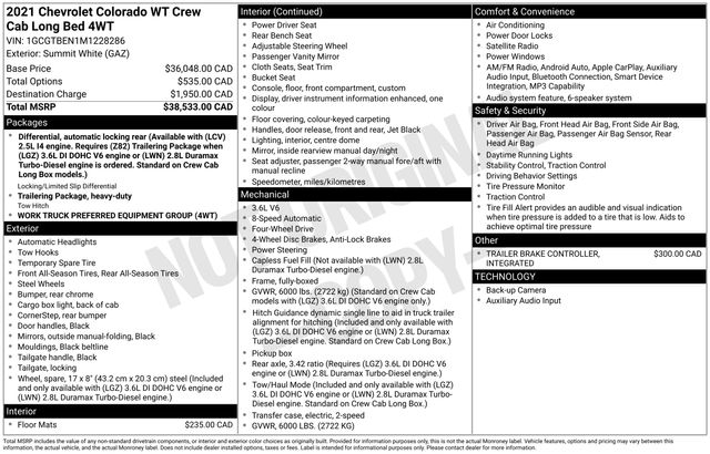 2021 Chevrolet Colorado Work Truck Crew Cab Long Box 4WD