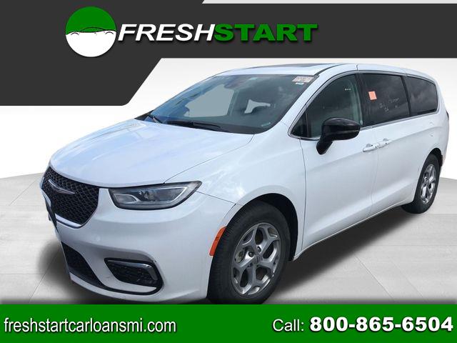 Navigation System, 13 Speakers, 3.25 Axle Ratio, 3rd row seats: split-bench, 4-Wheel Disc Brakes, ABS brakes, Air Conditioning, Alloy wheels, AM/FM radio: SiriusXM 360L, Apple CarPlay/Android Auto, Audio memory, Auto-dimming Rear-View mirror, Automatic temperature control, Black Seats, Brake assist, Bumpers: body-color, Compass, Delay-off headlights, Driver door bin, Driver vanity mirror, Driver's Seat Mounted Armrest, Dual front impact airbags, Dual front side impact airbags, Electronic Stability Control, Emergency communication system: Chrysler Connect, Four wheel independent suspension, Front anti-roll bar, Front Bucket Seats, Front dual zone A/C, Front fog lights, Front reading lights, Fully automatic headlights, Garage door transmitter, Gloss Black Exterior Mirrors, Heated door mirrors, Heated front seats, Heated rear seats, Heated steering wheel, Illuminated entry, Integrated Active Noise Cancellation, Knee airbag, Low tire pressure warning, Manufacturer's Statement of Origin, Memory seat, Nappa Leather Bucket Seats, Occupant sensing airbag, Outside temperature display, Overhead airbag, Overhead console, Panic alarm, ParkView Rear Back-Up Camera, Passenger door bin, Passenger seat mounted armrest, Passenger vanity mirror, Power door mirrors, Power driver seat, Power Liftgate, Power moonroof, Power passenger seat, Power steering, Power windows, Quick Order Package 27P, Radio data system, Radio: Uconnect 5 Nav w/10.1" Display, Rain sensing wipers, Rear air conditioning, Rear reading lights, Rear window defroster, Rear window wiper, Reclining 3rd row seat, Remote keyless entry, Security system, Speed control, Split folding rear seat, Spoiler, Steering wheel mounted audio controls, Tachometer, Telescoping steering wheel, Tilt steering wheel, Touring Suspension, Traction control, Trip computer, Turn signal indicator mirrors, Variably intermittent wipers, Ventilated front seats, Voltmeter, Wheels: 18" x 7.5" Painted Aluminum Design 2, Navigation System.
