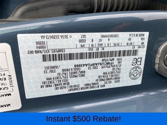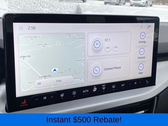 2.91 Axle Ratio, 4-Wheel Disc Brakes, 6 Speakers, ABS brakes, Air Conditioning, Alloy wheels, AM/FM radio: SiriusXM, AM/FM Stereo, Auto High-beam Headlights, Auto-dimming Rear-View mirror, Automatic temperature control, Brake assist, Bumpers: body-color, Compass, Delay-off headlights, Driver door bin, Driver vanity mirror, Dual front impact airbags, Dual front side impact airbags, Electronic Fuel Door Release, Electronic Stability Control, Emergency communication system: SYNC 4 911 Assist, Exterior Parking Camera Rear, FordPass Connect, Four wheel independent suspension, Front anti-roll bar, Front Bucket Seats, Front Center Armrest, Front dual zone A/C, Front fog lights, Front reading lights, Fully automatic headlights, Garage door transmitter, Heated ActiveX Trimmed Front Sport Contour Bucket Seats, Heated door mirrors, Heated front seats, Heated steering wheel, Illuminated entry, Knee airbag, Low tire pressure warning, Memory seat, Navigation system: Connected Navigation, Neutral Towing Capability, Occupant sensing airbag, Outside temperature display, Overhead airbag, Overhead console, Panic alarm, Passenger door bin, Passenger vanity mirror, Pedestrian Alert Sounder, Power door mirrors, Power driver seat, Power Liftgate, Power passenger seat, Power steering, Power windows, Radio data system, Rain sensing wipers, Rear anti-roll bar, Rear reading lights, Rear seat center armrest, Rear window defroster, Rear window wiper, Remote keyless entry, Security system, Speed control, Speed-sensing steering, Speed-Sensitive Wipers, Split folding rear seat, Spoiler, Steering wheel mounted audio controls, SYNC 4 w/Enhanced Voice Recognition, Telescoping steering wheel, Tilt steering wheel, Traction control, Trip computer, Variably intermittent wipers, Wheels: 19" Machined-Face Aluminum.