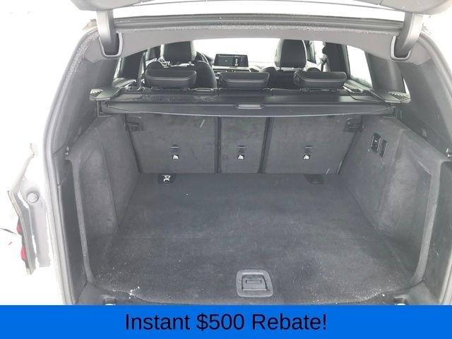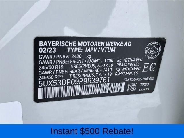 Apple CarPlay & Android Auto Compatibility, Connected Package Pro, ConnectedDrive Services, Exterior Parking Camera Rear, Hi-Fi Sound System, Navigation System, Panoramic Moonroof, Power Liftgate, Speed control, Wheels: 19" x 7.5" Y-Spoke (Style 693), 12 Speakers, 3.385 Axle Ratio, 4-Wheel Disc Brakes, ABS brakes, Air Conditioning, Alloy wheels, AM/FM Radio, AM/FM radio: SiriusXM, Auto High-beam Headlights, Auto-dimming door mirrors, Auto-dimming Rear-View mirror, Automatic temperature control, BMW Assist eCall, BMW TeleServices, Brake assist, Bumpers: body-color, Delay-off headlights, Driver door bin, Driver vanity mirror, Dual front impact airbags, Dual front side impact airbags, Electronic Stability Control, Emergency communication system: BMW Assist eCall, Enhanced USB & Bluetooth w/Smartphone Integration, Four wheel independent suspension, Front anti-roll bar, Front Bucket Seats, Front Center Armrest, Front dual zone A/C, Front reading lights, Fully automatic headlights, Garage door transmitter, Genuine wood dashboard insert, Genuine wood door panel insert, Heated door mirrors, Illuminated entry, Knee airbag, Low tire pressure warning, Memory seat, Navigation, Occupant sensing airbag, Outside temperature display, Overhead airbag, Panic alarm, Passenger door bin, Passenger vanity mirror, Perforated SensaTec Upholstery, Power door mirrors, Power driver seat, Power Front Seats, Power passenger seat, Power steering, Power windows, Radio data system, Rain sensing wipers, Rear air conditioning, Rear anti-roll bar, Rear reading lights, Rear seat center armrest, Rear window defroster, Rear window wiper, Remote keyless entry, Security system, SiriusXM Satellite Radio, Speed-sensing steering, Speed-Sensitive Wipers, Split folding rear seat, Spoiler, Sport Seats, Sport steering wheel, Steering wheel mounted audio controls, Tachometer, Telescoping steering wheel, Tilt steering wheel, Traction control, Trip computer, Turn signal indicator mirrors, Variably intermittent wipers, WiFi Hotspot, ALL WHEEL DRIVE, Apple CarPlay & Android Auto Compatibility, Connected Package Pro, ConnectedDrive Services, Exterior Parking Camera Rear, Hi-Fi Sound System, Navigation System, Panoramic Moonroof, Power Liftgate, Speed control, Wheels: 19" x 7.5" Y-Spoke (Style 693).