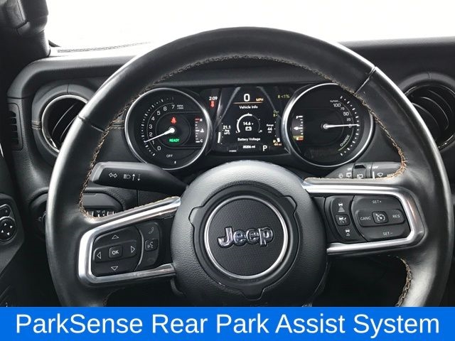 Safety is paramount in this Wrangler, with advanced features like Adaptive Cruise Control, Full Speed Forward Collision Warning Plus, Blind Spot & Cross Path Detection, and ParkSense Rear Park Assist System. Stay connected with the Uconnect 4C Nav system featuring an 8.4" display, Apple CarPlay, and Android Auto integration.