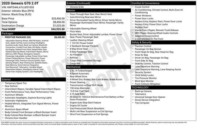 2020 Genesis G70 2.0T