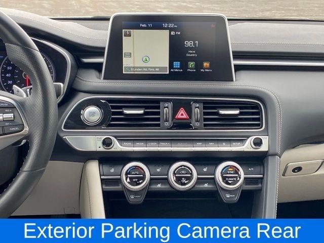Android Auto & Apple CarPlay, Elite Package, Exterior Parking Camera Rear, Nappa Leather Seating Surfaces w/Luxury Quilting, Navigation System, Option Group 02, Option Group 02 w/Prestige/Sport Package, Option Group 03, Prestige Package, Speed control, Wheels: 18" x 8.0J Alloy w/Bright Finish, 4-Wheel Disc Brakes, 6 Speakers, ABS brakes, Air Conditioning, Alloy wheels, AM/FM radio: SiriusXM, Anti-whiplash front head restraints, Auto High-beam Headlights, Auto-dimming Rear-View mirror, Automatic temperature control, Brake assist, Bumpers: body-color, Delay-off headlights, Driver door bin, Driver vanity mirror, Dual front impact airbags, Dual front side impact airbags, Electronic Stability Control, Emergency communication system: Genesis Connected Services, Four wheel independent suspension, Front anti-roll bar, Front Bucket Seats, Front Center Armrest, Front dual zone A/C, Front reading lights, Fully automatic headlights, Garage door transmitter: HomeLink, Heated door mirrors, Illuminated entry, Knee airbag, Leatherette Seating Surfaces, Low tire pressure warning, Multi-Adjustable Front Bucket Seats, Occupant sensing airbag, Outside temperature display, Overhead airbag, Overhead console, Panic alarm, Passenger door bin, Passenger vanity mirror, Power door mirrors, Power driver seat, Power passenger seat, Power steering, Power windows, Radio: AM/FM/SiriusXM/HD Audio System, Rear anti-roll bar, Rear reading lights, Rear seat center armrest, Rear window defroster, Remote keyless entry, Security system, Speed-Sensitive Wipers, Split folding rear seat, Steering wheel mounted audio controls, Tachometer, Telescoping steering wheel, Tilt steering wheel, Traction control, Trip computer, Turn signal indicator mirrors, Variably intermittent wipers, Android Auto & Apple CarPlay, Elite Package, Exterior Parking Camera Rear, Nappa Leather Seating Surfaces w/Luxury Quilting, Navigation System, Option Group 02, Option Group 02 w/Prestige/Sport Package, Option Group 03, Prestige Package, Speed control, Wheels: 18" x 8.0J Alloy w/Bright Finish.
