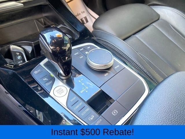 12 Speakers, 3.385 Axle Ratio, 4-Wheel Disc Brakes, ABS brakes, Air Conditioning, Alloy wheels, AM/FM Radio, AM/FM radio: SiriusXM with 360L, Apple CarPlay & Android Auto Compatibility, Auto High-beam Headlights, Auto-dimming door mirrors, Auto-dimming Rear-View mirror, Automatic temperature control, BMW Assist eCall, BMW TeleServices, Brake assist, Bumpers: body-color, Connected Package Pro, ConnectedDrive Services, Delay-off headlights, Driver door bin, Driver vanity mirror, Dual front impact airbags, Dual front side impact airbags, Electronic Stability Control, Emergency communication system: BMW Assist eCall, Enhanced Bluetooth, Exterior Parking Camera Rear, Four wheel independent suspension, Front anti-roll bar, Front Bucket Seats, Front Center Armrest, Front dual zone A/C, Front reading lights, Fully automatic headlights, Garage door transmitter, Genuine wood dashboard insert, Genuine wood door panel insert, Heated door mirrors, Hi-Fi Sound System, Illuminated entry, Knee airbag, Low tire pressure warning, Memory seat, Navigation, Navigation System, Occupant sensing airbag, Outside temperature display, Overhead airbag, Panic alarm, Passenger door bin, Passenger vanity mirror, Perforated SensaTec Upholstery, Power door mirrors, Power driver seat, Power Front Seats, Power Liftgate, Power passenger seat, Power steering, Power windows, Radio data system, Rain sensing wipers, Rear air conditioning, Rear anti-roll bar, Rear reading lights, Rear seat center armrest, Rear window defroster, Rear window wiper, Remote keyless entry, Roof rack: rails only, Security system, SiriusXM w/360L, Speed control, Speed-sensing steering, Speed-Sensitive Wipers, Split folding rear seat, Spoiler, Sport Seats, Sport steering wheel, Steering wheel mounted audio controls, Tachometer, Telescoping steering wheel, Tilt steering wheel, Traction control, Trip computer, Turn signal indicator mirrors, Variably intermittent wipers, Wheels: 19" x 7.5" Y-Spoke (Style 693), WiFi Hotspot.