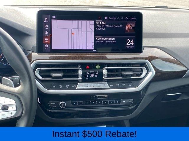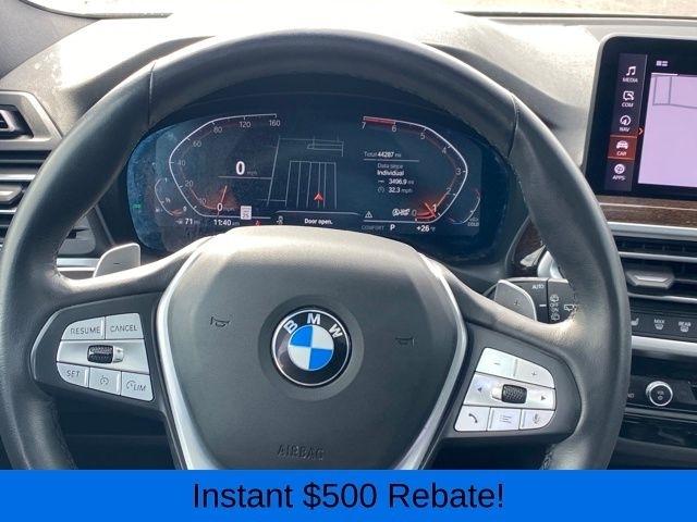 Head-Up Display, Heated Front Seats, Heated Steering Wheel, Live Cockpit Pro w/Navigation, Lumbar Support, Navigation System, Panoramic Moonroof, Premium Package, 12 Speakers, 3.385 Axle Ratio, 4-Wheel Disc Brakes, ABS brakes, Air Conditioning, Alloy wheels, AM/FM Radio, AM/FM radio: SiriusXM, Apple CarPlay & Android Auto Compatibility, Auto High-beam Headlights, Auto-dimming door mirrors, Auto-dimming Rear-View mirror, Automatic temperature control, BMW Assist eCall, BMW TeleServices, Brake assist, Bumpers: body-color, Connected Package Pro, ConnectedDrive Services, Delay-off headlights, Driver door bin, Driver vanity mirror, Dual front impact airbags, Dual front side impact airbags, Electronic Stability Control, Emergency communication system: BMW Assist eCall, Enhanced USB & Bluetooth w/Smartphone Integration, Exterior Parking Camera Rear, Four wheel independent suspension, Front anti-roll bar, Front Bucket Seats, Front Center Armrest, Front dual zone A/C, Front reading lights, Fully automatic headlights, Garage door transmitter, Genuine wood dashboard insert, Genuine wood door panel insert, Heated door mirrors, Hi-Fi Sound System, Illuminated entry, Knee airbag, Leather steering wheel, Low tire pressure warning, Memory seat, Navigation, Occupant sensing airbag, Outside temperature display, Overhead airbag, Panic alarm, Passenger door bin, Passenger vanity mirror, Perforated SensaTec Upholstery, Power door mirrors, Power driver seat, Power Front Seats, Power Liftgate, Power passenger seat, Power steering, Power windows, Radio data system, Rain sensing wipers, Rear air conditioning, Rear anti-roll bar, Rear reading lights, Rear seat center armrest, Rear window defroster, Rear window wiper, Remote keyless entry, Security system, SiriusXM w/360L & 1 Yr Platinum Plan Subscription, Speed control, Speed-sensing steering, Speed-Sensitive Wipers, Split folding rear seat, Spoiler, Sport Seats, Sport steering wheel, Steering wheel mounted audio controls, Tachometer, Telescoping steering wheel, Tilt steering wheel, Traction control, Trip computer, Turn signal indicator mirrors, Variably intermittent wipers, Wheels: 19" x 7.5" Y-Spoke (Style 693), WiFi Hotspot, Head-Up Display, Heated Front Seats, Heated Steering Wheel, Live Cockpit Pro w/Navigation, Lumbar Support, Navigation System, Panoramic Moonroof, Premium Package.