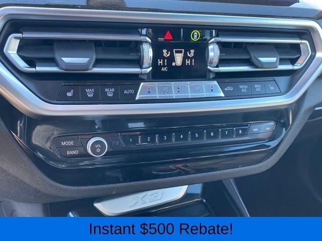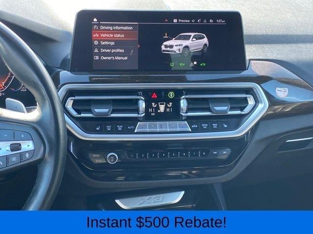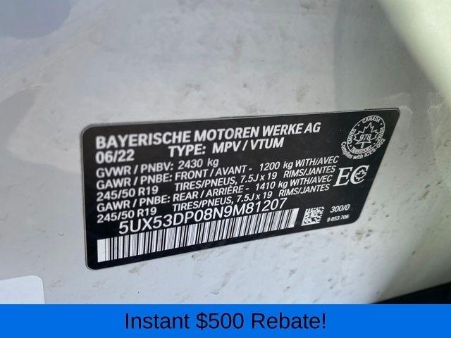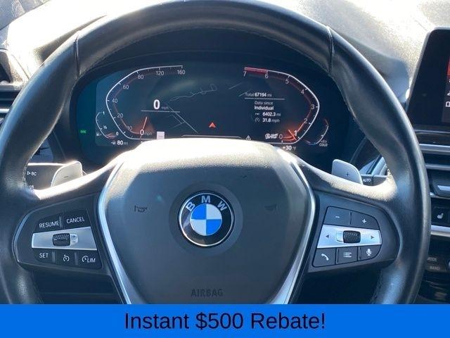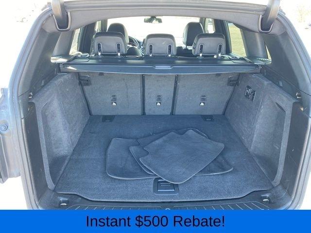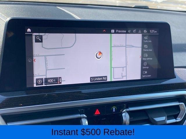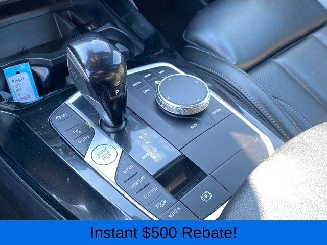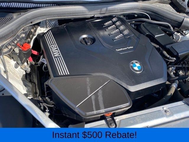 12 Speakers, 3.385 Axle Ratio, 4-Wheel Disc Brakes, ABS brakes, Air Conditioning, Alloy wheels, AM/FM Radio, AM/FM radio: SiriusXM with 360L, Apple CarPlay & Android Auto Compatibility, Auto High-beam Headlights, Auto-dimming door mirrors, Auto-dimming Rear-View mirror, Automatic temperature control, BMW Assist eCall, BMW TeleServices, Brake assist, Bumpers: body-color, Connected Package Pro, ConnectedDrive Services, Delay-off headlights, Driver door bin, Driver vanity mirror, Dual front impact airbags, Dual front side impact airbags, Electronic Stability Control, Emergency communication system: BMW Assist eCall, Enhanced Bluetooth, Exterior Parking Camera Rear, Four wheel independent suspension, Front anti-roll bar, Front Bucket Seats, Front Center Armrest, Front dual zone A/C, Front reading lights, Fully automatic headlights, Garage door transmitter, Genuine wood dashboard insert, Genuine wood door panel insert, Heated door mirrors, Hi-Fi Sound System, Illuminated entry, Knee airbag, Low tire pressure warning, Memory seat, Navigation, Navigation System, Occupant sensing airbag, Outside temperature display, Overhead airbag, Panic alarm, Passenger door bin, Passenger vanity mirror, Perforated SensaTec Upholstery, Power door mirrors, Power driver seat, Power Front Seats, Power Liftgate, Power passenger seat, Power steering, Power windows, Radio data system, Rain sensing wipers, Rear air conditioning, Rear anti-roll bar, Rear reading lights, Rear seat center armrest, Rear window defroster, Rear window wiper, Remote keyless entry, Roof rack: rails only, Security system, SiriusXM w/360L, Speed control, Speed-sensing steering, Speed-Sensitive Wipers, Split folding rear seat, Spoiler, Sport Seats, Sport steering wheel, Steering wheel mounted audio controls, Tachometer, Telescoping steering wheel, Tilt steering wheel, Traction control, Trip computer, Turn signal indicator mirrors, Variably intermittent wipers, Wheels: 19" x 7.5" Y-Spoke (Style 693), WiFi Hotspot.