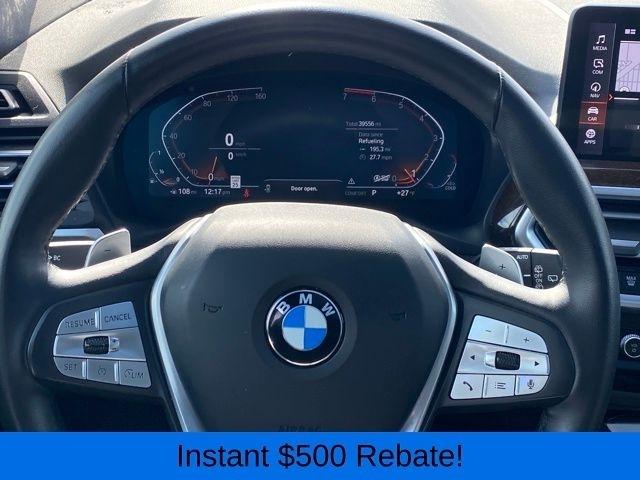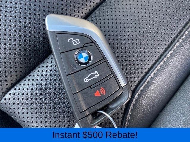 12 Speakers, 3.385 Axle Ratio, 4-Wheel Disc Brakes, ABS brakes, Air Conditioning, Alloy wheels, AM/FM Radio, AM/FM radio: SiriusXM, Apple CarPlay & Android Auto Compatibility, Auto High-beam Headlights, Auto-dimming door mirrors, Auto-dimming Rear-View mirror, Automatic temperature control, BMW Assist eCall, BMW TeleServices, Brake assist, Bumpers: body-color, Connected Package Pro, ConnectedDrive Services, Delay-off headlights, Driver door bin, Driver vanity mirror, Dual front impact airbags, Dual front side impact airbags, Electronic Stability Control, Emergency communication system: BMW Assist eCall, Enhanced USB & Bluetooth w/Smartphone Integration, Exterior Parking Camera Rear, Four wheel independent suspension, Front anti-roll bar, Front Bucket Seats, Front Center Armrest, Front dual zone A/C, Front reading lights, Fully automatic headlights, Garage door transmitter, Genuine wood dashboard insert, Genuine wood door panel insert, Heated door mirrors, Hi-Fi Sound System, Illuminated entry, Knee airbag, Leather steering wheel, Low tire pressure warning, Memory seat, Navigation, Navigation System, Occupant sensing airbag, Outside temperature display, Overhead airbag, Panic alarm, Passenger door bin, Passenger vanity mirror, Perforated SensaTec Upholstery, Power door mirrors, Power driver seat, Power Front Seats, Power Liftgate, Power passenger seat, Power steering, Power windows, Radio data system, Rain sensing wipers, Rear air conditioning, Rear anti-roll bar, Rear reading lights, Rear seat center armrest, Rear window defroster, Rear window wiper, Remote keyless entry, Security system, SiriusXM w/360L & 1 Yr Platinum Plan Subscription, Speed control, Speed-sensing steering, Speed-Sensitive Wipers, Split folding rear seat, Spoiler, Sport Seats, Sport steering wheel, Steering wheel mounted audio controls, Tachometer, Telescoping steering wheel, Tilt steering wheel, Traction control, Trip computer, Turn signal indicator mirrors, Variably intermittent wipers, Wheels: 19" x 7.5" Y-Spoke (Style 693), WiFi Hotspot.