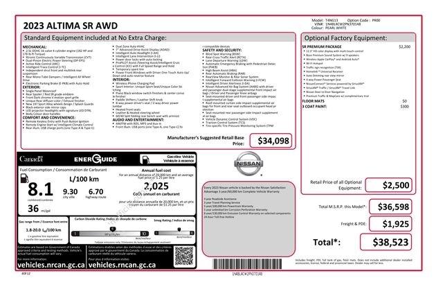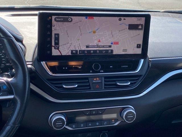 4-Wheel Disc Brakes, 6 Speakers, ABS brakes, Air Conditioning, Alloy wheels, AM/FM radio: SiriusXM, Auto High-beam Headlights, Blind Spot Warning, Brake assist, Bumpers: body-color, Delay-off headlights, Driver door bin, Driver vanity mirror, Dual front impact airbags, Dual front side impact airbags, Electronic Stability Control, Four wheel independent suspension, Front anti-roll bar, Front Bucket Seats, Front Center Armrest, Front reading lights, Front Sport Bucket Seats, Fully automatic headlights, Illuminated entry, Knee airbag, Leather Shift Knob, Low tire pressure warning, NissanConnect featuring Apple CarPlay and Android Auto, Occupant sensing airbag, Outside temperature display, Overhead airbag, Overhead console, Panic alarm, Passenger door bin, Passenger vanity mirror, Power door mirrors, Power driver seat, Power steering, Power windows, Radio data system, Radio: AM/FM Audio System, Rear anti-roll bar, Rear Parking Sensors, Rear reading lights, Rear seat center armrest, Rear side impact airbag, Rear window defroster, Remote keyless entry, Security system, Speed control, Speed-sensing steering, Speed-Sensitive Wipers, Split folding rear seat, Sport Seat Trim, Steering wheel mounted audio controls, Tachometer, Telescoping steering wheel, Tilt steering wheel, Traction control, Trip computer, Variably intermittent wipers, Wheels: 19" Sport Alloy.
