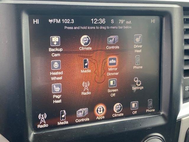 Heated Front Seats, Heated Seats & Wheel Group (DISC), Heated Steering Wheel, 17" x 7" Aluminum Wheels, 4-Wheel Disc Brakes, 40/20/40 Split Bench Seat, 6 Month Trial (Reg. Required), 6 Month Trial (Registration Required), 6 Speakers, 8.4" Touchscreen Display, ABS brakes, Active Grille Shutters, Air Conditioning, Alloy wheels, AM/FM radio, Audio Jack Input for Mobile Devices, Black Exterior Mirrors, Black Rotary Shifter, Brake assist, Bumpers: chrome, Center Hub, Charge Only Remote USB Port, Cloth 40/20/40 Bench Seat, Compass, Delay-off headlights, Driver door bin, Dual front impact airbags, Dual front side impact airbags, Electronic Shift, Electronic Stability Control, Electronically Controlled Throttle, Engine Oil Heat Exchanger, Exterior Mirrors w/Heating Element, For Details Visit DriveUconnect.com, Front anti-roll bar, Front Armrest w/3 Cupholders, Front Center Armrest w/Storage, Front reading lights, Front wheel independent suspension, Fully automatic headlights, GPS Antenna Input, Heated door mirrors, Heavy-Duty Engine Cooling, Hemi Badge, Illuminated entry, Integrated Voice Command w/Bluetooth, Low tire pressure warning, Media Hub (USB, AUX), Nav-Capable! See Dealer for Details, Occupant sensing airbag, Outside temperature display, Overhead airbag, Overhead console, Panic alarm, ParkView Rear Back-Up Camera, Passenger door bin, Passenger vanity mirror, Power Black Trailer Tow Mirrors, Power door mirrors, Power steering, Power windows, Radio data system, Radio: Uconnect 3 w/5" Display, Radio: Uconnect 3C w/8.4" Display, Rear anti-roll bar, Rear seat center armrest, Rear step bumper, Remote keyless entry, Remote USB Port, SIRIUSXM Satellite Radio, Speed control, Storage Tray, Tachometer, Tilt steering wheel, Tip Start, Traction control, Trailer Brake Control, Trailer Tow Mirrors & Brake Group, Trip computer, Uconnect Access, Variably intermittent wipers, Voltmeter, Heated Front Seats, Heated Seats & Wheel Group (DISC), Heated Steering Wheel.