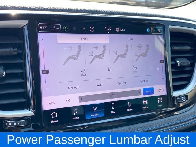13 Alpine Speakers, 360 Surround View Camera System, 3rd Row USB Charge Port, 506 Watt Amplifier, Front Passenger Auto Advance N Return, Integrated Active Noise Cancellation, Navigation System, Parallel & Perp Park Assist w/Stop, ParkSense Front/Rear Park Assist w/Stop, Power Adjust 8-Way Front Passenger Seat, Power Passenger Lumbar Adjust, Premium & Safety Sphere Group (DISC), 1-Year Trial (Registration Required), 10.1" Touchscreen Display, 13 Speakers, 3.59 Axle Ratio, 3rd row seats: split-bench, 4-Wheel Disc Brakes, 4G LTE Wi-Fi Hot Spot, ABS brakes, Air Conditioning, Alloy wheels, AM/FM radio: SiriusXM 360L, Apple CarPlay, Apple CarPlay/Android Auto, Audio memory, Auto-dimming Rear-View mirror, Automatic temperature control, Black Seats, Brake assist, Bumpers: body-color, Compass, Delay-off headlights, Disassociated Touchscreen Display, Driver door bin, Driver vanity mirror, Driver's Seat Mounted Armrest, Dual front impact airbags, Dual front side impact airbags, Electronic Stability Control, Emergency communication system: Uconnect Access, Exterior Parking Camera Rear, Four wheel independent suspension, Front anti-roll bar, Front Bucket Seats, Front dual zone A/C, Front fog lights, Front reading lights, Fully automatic headlights, Garage door transmitter, Global Telematics Box Module (TBM), Google Android Auto, GPS Antenna Input, GPS Navigation, HD Radio, Heated door mirrors, Heated front seats, Heated steering wheel, Heavy Duty Suspension, Illuminated entry, Instrument Panel Anodized Silver Bezel, Integrated Center Stack Radio, Integrated Voice Command w/Bluetooth, Knee airbag, Leather steering wheel, Liquid Titanium Accents, Low tire pressure warning, Memory seat, Occupant sensing airbag, Outside temperature display, Overhead airbag, Overhead console, Panic alarm, Passenger door bin, Passenger seat mounted armrest, Passenger vanity mirror, Perforated Leather Trim Bucket Seats, Power door mirrors, Power driver seat, Power Liftgate, Power passenger seat, Power steering, Power windows, Quick Order Package 2EL, Radio data system, Radio: Uconnect 5 Nav w/10.1" Display, Rain sensing wipers, Rear air conditioning, Rear reading lights, Rear window defroster, Rear window wiper, Reclining 3rd row seat, Remote keyless entry, Roof rack, Security system, SiriusXM Guardian - Included Trial (B), SiriusXM Satellite Radio, SiriusXM w/360L, Speed control, Split folding rear seat, Spoiler, Steering wheel mounted audio controls, Tachometer, Telescoping steering wheel, Tilt steering wheel, Traction control, Trip computer, Turn signal indicator mirrors, USB Host Flip, Variably intermittent wipers, Voltmeter, Wheels: 17" x 7.0" Diamond Cut w/Painted Pockets, 13 Alpine Speakers, 360 Surround View Camera System, 3rd Row USB Charge Port, 506 Watt Amplifier, Front Passenger Auto Advance N Return, Integrated Active Noise Cancellation, Navigation System, Parallel & Perp Park Assist w/Stop, ParkSense Front/Rear Park Assist w/Stop, Power Adjust 8-Way Front Passenger Seat, Power Passenger Lumbar Adjust, Premium & Safety Sphere Group (DISC).