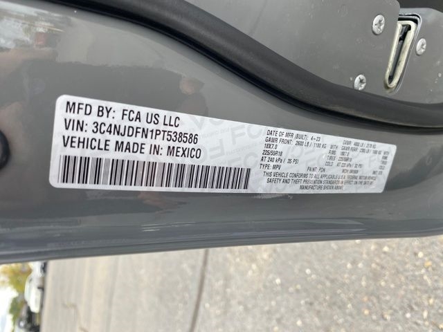 3.73 Final Drive Ratio, 4-Wheel Disc Brakes, 6 Speakers, ABS brakes, Air Conditioning, Alloy wheels, AM/FM radio: SiriusXM, Auto High-beam Headlights, Auto-dimming Rear-View mirror, Brake assist, Bumpers: body-color, Compass, Delay-off headlights, Driver door bin, Driver vanity mirror, Dual front impact airbags, Dual front side impact airbags, Electronic Stability Control, Four wheel independent suspension, Front anti-roll bar, Front Bucket Seats, Front Center Armrest w/Storage, Front fog lights, Front reading lights, Fully automatic headlights, Heated door mirrors, Heated front seats, Heated steering wheel, Illuminated entry, Knee airbag, Leather Shift Knob, Leatherette Seats, Low tire pressure warning, MOPAR All-Weather Floor Mats, MOPAR Interior Protection Package (DISC), MOPAR Molded Cargo Tray, Occupant sensing airbag, Outside temperature display, Overhead airbag, Overhead console, Panic alarm, ParkView Rear Back-Up Camera, Passenger door bin, Passenger vanity mirror, Power door mirrors, Power driver seat, Power steering, Power windows, Quick Order Package 29L, Radio: Uconnect 5 w/10.1" Display, Rear anti-roll bar, Rear seat center armrest, Rear window defroster, Rear window wiper, Remote keyless entry, Security system, Speed control, Split folding rear seat, Spoiler, Steering wheel mounted audio controls, Tachometer, Telescoping steering wheel, Tilt steering wheel, Traction control, Trip computer, Variably intermittent wipers, Wheels: 18" x 7.0" Painted Aluminum.