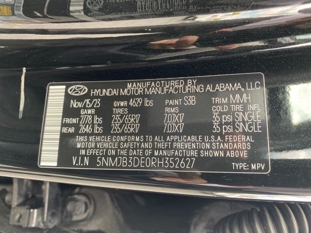 3.648 Axle Ratio, 4-Wheel Disc Brakes, 6 Speakers, ABS brakes, Air Conditioning, Alloy wheels, AM/FM radio: SiriusXM, Apple CarPlay & Android Auto, Auto High-beam Headlights, Automatic temperature control, Brake assist, Bumpers: body-color, Delay-off headlights, Driver door bin, Driver vanity mirror, Dual front impact airbags, Dual front side impact airbags, Electronic Stability Control, Emergency communication system: Blue Link Connected Car Service (3-year complimentary subscription), Exterior Parking Camera Rear, Four wheel independent suspension, Front anti-roll bar, Front Bucket Seats, Front Center Armrest, Front dual zone A/C, Front reading lights, Fully automatic headlights, Heated door mirrors, Heated Front Bucket Seats, Heated front seats, Illuminated entry, Low tire pressure warning, Occupant sensing airbag, Option Group 01, Outside temperature display, Overhead airbag, Overhead console, Panic alarm, Passenger door bin, Passenger vanity mirror, Power door mirrors, Power driver seat, Power Liftgate, Power steering, Power windows, Radio data system, Radio: AM/FM/HD Audio System, Rear anti-roll bar, Rear seat center armrest, Rear side impact airbag, Rear window defroster, Rear window wiper, Remote keyless entry, Roof rack: rails only, Security system, Speed control, Split folding rear seat, Spoiler, Stain & Odor Resistant Cloth Seat Trim, Steering wheel mounted audio controls, Tachometer, Telescoping steering wheel, Tilt steering wheel, Traction control, Trip computer, Variably intermittent wipers, Wheels: 17" x 7.0J" Alloy, Wheels: 19" x 7.5J" Machine-Face Finish Alloy.