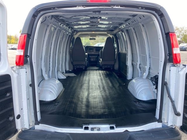 Designed with your productivity in mind, this Express 2500 Work Van Cargo offers a wealth of features to streamline your workday. The full-length black rubberized-vinyl floor covering provides durable protection, while the driver's seat-mounted armrest and high-back bucket seats ensure all-day comfort. Stay connected with the AM/FM stereo with MP3 player, and keep an eye on your vehicle's performance with the tachometer and trip computer.