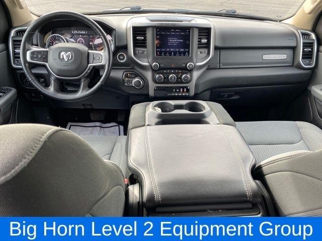 115V Auxiliary Power Outlet, 115V Auxiliary Rear Power Outlet, 2 USB Full Function/Charge Only Media Hub, 2nd Row In Floor Storage Bins, 400W Inverter, Air Conditioning ATC w/Dual Zone Control, Auto-Dimming Rear-View Mirror, Big Horn Badge, Big Horn IP Badge, Big Horn Level 2 Equipment Group, Black Premium Power Mirrors, Class IV Receiver Hitch, Dampened Tailgate, Foam Bottle Insert (Door Trim Panel), Glove Box Lamp, Heated Front Seats, Heated Steering Wheel, ParkSense Front/Rear Park Assist w/Stop, ParkView Rear Back-Up Camera, Power 4-Way Driver Lumbar Adjust, Power 8-Way Driver Seat, Power Adjustable Pedals, Protection Group, Quick Order Package 25Z Big Horn, Radio: Uconnect 4 w/8.4" Display, Rear Dome w/On/Off Switch Lamp, Rear Power Sliding Window, Rear Window Defroster, Remote Start System, Security Alarm, SiriusXM Satellite Radio, Speed control, Sun Visors w/Illuminated Vanity Mirrors, Tow Hooks, Universal Garage Door Opener, 3 Rear Seat Head Restraints, 3.21 Rear Axle Ratio, 4 Way Front Headrests, 4-Wheel Disc Brakes, 48V Belt Starter Generator, 6 Speakers, ABS brakes, Air Conditioning, Alloy wheels, AM/FM radio, Brake assist, Bumpers: chrome, Cloth Bench Seat, Compass, Delay-off headlights, Driver door bin, Dual front impact airbags, Dual front side impact airbags, Electronic Stability Control, Front anti-roll bar, Front Center Armrest w/Storage, Front fog lights, Front reading lights, Front Seat Back Map Pockets, Front wheel independent suspension, Fully automatic headlights, GPS Antenna Input, Heated door mirrors, Illuminated entry, Leather steering wheel, Low tire pressure warning, Occupant sensing airbag, Outside temperature display, Overhead airbag, Overhead console, Panic alarm, Passenger door bin, Passenger vanity mirror, Power door mirrors, Power steering, Power windows, Radio data system, Radio: Uconnect 3 w/5" Display, Rear 60/40 Folding Seat, Rear anti-roll bar, Rear seat center armrest, Rear step bumper, Rear Wheelhouse Liners, Remote keyless entry, Split folding rear seat, Steering wheel mounted audio controls, Tachometer, Telescoping steering wheel, Tilt steering wheel, Traction control, Trip computer, Variably intermittent wipers, Voltmeter, Wheel to Wheel Side Steps, Wheels: 18" x 8" Cast-Aluminum Painted, Clean Carfax, 5.7L HEMI V8, 115V Auxiliary Power Outlet, 115V Auxiliary Rear Power Outlet, 2 USB Full Function/Charge Only Media Hub, 2nd Row In Floor Storage Bins, 400W Inverter, Air Conditioning ATC w/Dual Zone Control, Auto-Dimming Rear-View Mirror, Big Horn Badge, Big Horn IP Badge, Big Horn Level 2 Equipment Group, Black Premium Power Mirrors, Class IV Receiver Hitch, Dampened Tailgate, Foam Bottle Insert (Door Trim Panel), Glove Box Lamp, Heated Front Seats, Heated Steering Wheel, ParkSense Front/Rear Park Assist w/Stop, ParkView Rear Back-Up Camera, Power 4-Way Driver Lumbar Adjust, Power 8-Way Driver Seat, Power Adjustable Pedals, Protection Group, Quick Order Package 25Z Big Horn, Radio: Uconnect 4 w/8.4" Display, Rear Dome w/On/Off Switch Lamp, Rear Power Sliding Window, Rear Window Defroster, Remote Start System, Security Alarm, SiriusXM Satellite Radio, Speed control, Sun Visors w/Illuminated Vanity Mirrors, Tow Hooks, Universal Garage Door Opener.