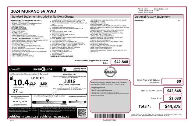Heated Front Bucket Seats, Leatherette-Appointed Seat Trim, NissanConnect featuring Apple CarPlay and Android Auto, Speed control, 4-Wheel Disc Brakes, 4.667 Axle Ratio, 6 Speakers, ABS brakes, Air Conditioning, Alloy wheels, AM/FM radio: SiriusXM, AM/FM/CD/MP3/WMA Audio System, Auto High-beam Headlights, Auto-dimming Rear-View mirror, Automatic temperature control, Blind Spot Warning, Brake assist, Bumpers: body-color, CD player, Child-Seat-Sensing Airbag, Compass, Delay-off headlights, Driver door bin, Driver vanity mirror, Dual front impact airbags, Dual front side impact airbags, Electronic Stability Control, Four wheel independent suspension, Front anti-roll bar, Front Bucket Seats, Front Center Armrest, Front dual zone A/C, Front fog lights, Front reading lights, Fully automatic headlights, Heated door mirrors, Heated front seats, Illuminated entry, Knee airbag, Leather steering wheel, Low tire pressure warning, Occupant sensing airbag, Outside temperature display, Overhead airbag, Overhead console, Panic alarm, Passenger door bin, Passenger vanity mirror, Power door mirrors, Power driver seat, Power passenger seat, Power steering, Power windows, Radio data system, Rear anti-roll bar, Rear reading lights, Rear seat center armrest, Rear side impact airbag, Rear window defroster, Rear window wiper, Remote keyless entry, Security system, Speed-sensing steering, Speed-Sensitive Wipers, Split folding rear seat, Spoiler, Steering wheel mounted audio controls, Tachometer, Telescoping steering wheel, Tilt steering wheel, Traction control, Trip computer, Turn signal indicator mirrors, Variably intermittent wipers, Wheels: 18" Machined Aluminum-Alloy, Heated Front Bucket Seats, Leatherette-Appointed Seat Trim, NissanConnect featuring Apple CarPlay and Android Auto, Speed control.