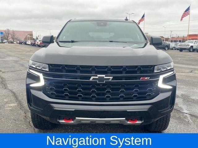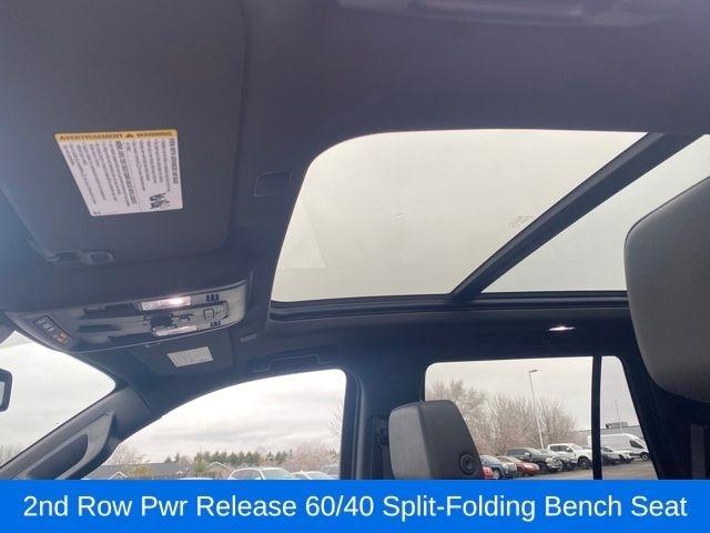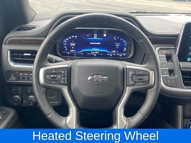 2nd Row Pwr Release 60/40 Split-Folding Bench Seat, 3rd Row 60/40 Power-Folding Split-Bench Seat, Driver Alert Package, HD Surround Vision, Heated 2nd Row Outboard Seats, Heated Steering Wheel, Lane Change Alert w/Side Blind Zone Alert, Luxury Package, Memory Settings, Navigation System, Outside Heated Power-Adjustable Mirrors, Power Tilt & Telescopic Steering Column, Rear Cross Traffic Alert, Rear Pedestrian Alert, 10-Way Power Driver & Passenger Seat Adjusters, 1st & 2nd Row Color-Keyed Carpeted Floor Mats, 2-Speed Active Electronic AutoTrac Transfer Case, 3.23 Rear Axle Ratio, 3rd row seats: split-bench, 4-Wheel Disc Brakes, 9 Speakers, ABS brakes, Air Conditioning, Alloy wheels, AM/FM radio: SiriusXM with 360L, Apple CarPlay/Android Auto, Auto High-beam Headlights, Auto-Dimming Inside Rear-View Mirror, Auto-dimming Rear-View mirror, Automatic temperature control, Black Tubular Assist Steps, Bose 9-Speaker Stereo Audio System Feature, Brake assist, Bright Front & Rear Door Sill Plates, Bumpers: body-color, Color-Keyed Carpeting Floor Covering, Compass, Delay-off headlights, Driver & Front Outboard Passenger Airbags, Driver door bin, Driver vanity mirror, Dual front impact airbags, Dual front side impact airbags, Dual-Pane Power Panoramic Sunroof, Electronic Stability Control, Emergency communication system: OnStar and Chevrolet connected services capable, Enhanced Driver Information Center, Floor Console w/Storage Area, Four wheel independent suspension, Front anti-roll bar, Front Bucket Seats, Front Center Armrest, Front dual zone A/C, Front High-Approach Angle Fascia, Front High-Back Reclining Bucket Seats, Front reading lights, Fully automatic headlights, Garage door transmitter, Hands-Free Rear Power Programmable Liftgate, Heated door mirrors, Heated Driver & Front Passenger Seats, Heated front seats, Hill Descent Control, Illuminated entry, Infotainment Display, Leather-Appointed Seat Trim, LED Daytime Running Lamps, Low tire pressure warning, Memory seat, Memory Settings for Driver, Occupant sensing airbag, Outside temperature display, Overhead airbag, Overhead console, Panic alarm, Passenger door bin, Passenger vanity mirror, Power door mirrors, Power driver seat, Power Liftgate, Power passenger seat, Power Release 2nd Row Bucket Seats, Power steering, Power windows, Preferred Equipment Group 2Z7, Premium audio system: Chevrolet Infotainment 3 Premium, Premium Smooth Ride Suspension, Radio: Chevrolet Infotainment 3 Premium System, Rain sensing wipers, Rear air conditioning, Rear anti-roll bar, Rear reading lights, Rear seat center armrest, Rear window defroster, Rear window wiper, Red Horizontal-Mounted Recovery Hooks, Remote keyless entry, Remote Start, Roof rack: rails only, Security system, SiriusXM Radio w/360L, Speed control, Speed-sensing steering, Split folding rear seat, Spoiler, Steering wheel mounted audio controls, Tachometer, Telescoping steering wheel, Tilt steering wheel, Traction control, Trip computer, Universal Home Remote, Variably intermittent wipers, Voltmeter, Wheels: 20" x 9" Machined Aluminum, Wireless Charging, Wrapped Steering Wheel, 2nd Row Pwr Release 60/40 Split-Folding Bench Seat, 3rd Row 60/40 Power-Folding Split-Bench Seat,