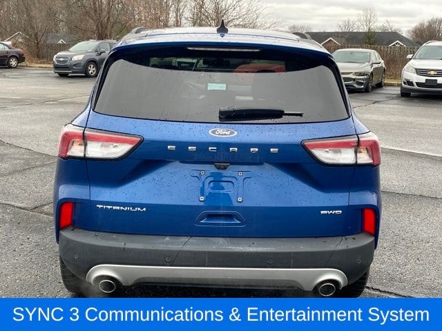 This 2022 Ford Escape Titanium is a sophisticated and capable SUV that offers a premium driving experience. With its turbocharged 2.0L EcoBoost engine and all-wheel drive, this Escape delivers impressive performance and efficiency, achieving up to 31 MPG on the highway. The sleek exterior design is complemented by a well-appointed interior, featuring luxurious ActiveX-trimmed sport seats, a heated steering wheel, and a state-of-the-art SYNC 3 infotainment system with a voice-activated navigation system.
