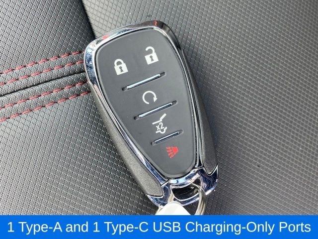 1 Type-A and 1 Type-C USB Charging-Only Ports, 1 Type-A and 1 Type-C USB Ports, 120-Volt Power Outlet, 6-Speaker Audio System Feature, Adaptive Cruise and Sound Package, Adaptive Cruise Control, Bose Premium 7-Speaker Audio System Feature, Convenience Package, Driver and Front Passenger Illuminated Vanity Mirrors, Driver Confidence Package, Dual-Pane Panoramic Power Sunroof, Exterior Parking Camera Rear, Hands Free Power Programmable Liftgate, Inside Rear-View Auto-Dimming Mirror, Lane Change Alert with Side Blind Zone Alert, Preferred Equipment Group 1RS, Radio: AM/FM Stereo Audio System, Rear Cross Traffic Alert, Rear Park Assist, Single-Zone Automatic Climate Control, SiriusXM Trial Subscription, Wheels: 19" High Gloss Black Machined Aluminum, Wireless Apple CarPlay/Android Auto, Wireless Charging, 2-Way Power Driver Lumbar Seat Adjuster, 4-Way Manual Front Passenger Seat Adjuster, 4-Wheel Disc Brakes, 5.45 Final Drive Axle Ratio, 6 Speakers, 8-Way Power Driver Seat Adjuster, ABS brakes, Air Conditioning, Alloy wheels, AM/FM radio: SiriusXM, Auto High-beam Headlights, Brake assist, Bumpers: body-color, Cabin Humidity Sensor, Compass, Delay-off headlights, Driver door bin, Driver vanity mirror, Dual front impact airbags, Dual front side impact airbags, Electronic Stability Control, Emergency communication system: OnStar and Chevrolet connected services capable, Evotex Seat Trim, Flat-Folding Front Passenger Seatback, Front anti-roll bar, Front Bucket Seats, Front Center Armrest, Front reading lights, Front wheel independent suspension, Fully automatic headlights, Heated door mirrors, Heated Driver and Front Passenger Seats, Heated front seats, Heated steering wheel, Illuminated entry, Knee airbag, Low tire pressure warning, Mosaic Black Metallic Two-Tone Roof, Occupant sensing airbag, Overhead airbag, Overhead console, Panic alarm, Passenger door bin, Passenger vanity mirror, Power door mirrors, Power driver seat, Power steering, Power windows, Radio data system, Rear seat center armrest, Rear side impact airbag, Rear window defroster, Rear window wiper, Remote keyless entry, Ride and Handling Suspension, Security system, Speed control, Split folding rear seat, Spoiler, Steering wheel mounted audio controls, Tachometer, Telescoping steering wheel, Tilt steering wheel, Traction control, Trip computer, Variably intermittent wipers, 1 Type-A and 1 Type-C USB Charging-Only Ports, 1 Type-A and 1 Type-C USB Ports, 120-Volt Power Outlet, 6-Speaker Audio System Feature, Adaptive Cruise and Sound Package, Adaptive Cruise Control, Bose Premium 7-Speaker Audio System Feature, Convenience Package, Driver and Front Passenger Illuminated Vanity Mirrors, Driver Confidence Package, Dual-Pane Panoramic Power Sunroof, Exterior Parking Camera Rear, Hands Free Power Programmable Liftgate, Inside Rear-View Auto-Dimming Mirror, Lane Change Alert with Side Blind Zone Alert, Preferred Equipment Group 1RS, Radio: AM/FM Stereo Audio System, Rear Cross Traffic Alert, Rear Park Assist, Single-Zone Automatic Climate Control, SiriusXM Trial Subscription, Wheels: 19" High Gloss Black Machined Aluminum, Wireless Apple CarPlay/Android Auto, Wireless Charging.