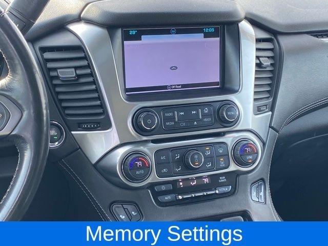 2nd Row Pwr Release 60/40 Split Folding Bench Seat, 3.42 Rear Axle Ratio, 3rd Row 60/40 Power Fold Split-Bench, Bose Premium 9-Speaker System, Fog Lamps, Front & Rear Park Assist, Hands Free Power Liftgate, Heated 2nd Row Seats, Heated Leather Wrapped Steering Wheel, Integrated Trailer Brake Controller, Lane Change Alert w/Side Blind Zone Alert, Luxury Package, Max Trailering Package, Memory Settings, Passive Entry System, Power Sunroof, Power Tilt & Telescopic Steering Column w/Memory, Power-Folding Heated Outside Mirrors, Push Button Keyless Start, Radio: Chevrolet MyLink w/Nav/AM/FM Stereo, Rear Cross-Traffic Alert, Rear Seat Blu-Ray/DVD Entertainment System, Standard Suspension Package, Sun, Entertainment & Destinations Package, 18" x 8.5" Aluminum Wheels, 1st & 2nd Row Color-Keyed Carpeted Floor Mats, 2nd Row 60/40 Split-Folding Manual Bench, 3rd Row Manual 60/40 Split-Folding Fold Flat Bench, 3rd row seats: split-bench, 4-Wheel Antilock Disc Brakes w/Brake Assist, 4-Wheel Disc Brakes, 5 12-Volt Auxiliary Power Outlets, 9 Speakers, ABS brakes, Adjustable pedals, Air Conditioning, All-Weather Floor Mats, All-Weather Rear Cargo Mat (LPO), Alloy wheels, AM/FM radio: SiriusXM, Apple CarPlay/Android Auto, Auto High-beam Headlights, Auto-Dimming Inside Rear-View Mirror, Auto-dimming Rear-View mirror, Automatic temperature control, Black Assist Steps, Bluetooth® For Phone, Brake assist, Bumpers: body-color, Cargo Net, CD player, Color-Keyed Carpeting Floor Covering, Compass, Delay-off headlights, Driver door bin, Driver Inboard & Front Passenger Airbags, Driver vanity mirror, Dual front impact airbags, Dual front side impact airbags, Electronic Cruise Control w/Set & Resume Speed, Electronic Stability Control, Emergency communication system: OnStar Guidance, Enhanced Driver Alert Package (Y86), Extended-Range Remote Keyless Entry, Exterior Parking Camera Rear, Floor Console, Forward Collision Alert, Front anti-roll bar, Front Bucket Seats, Front Center Armrest, Front dual zone A/C, Front Heated Reclining Bucket Seats, Front Passenger 6-Way Power Seat Adjuster, Front reading lights, Front wheel independent suspension, Fully automatic headlights, Garage door transmitter, HD Radio, Heated door mirrors, Heated front seats, Illuminated entry, IntelliBeam Headlamps, Interior Protection Package (LPO), Lane Keep Assist w/Lane Departure Warning, Leather-Appointed Seat Trim, Leather-Wrapped Steering Wheel, Low Speed Forward Automatic Braking, Low tire pressure warning, Memory seat, Occupant sensing airbag, OnStar Basic Plan For 5 Years, Outside temperature display, Overhead airbag, Overhead console, Panic alarm, Passenger door bin, Passenger vanity mirror, Pedal memory, Power door mirrors, Power driver seat, Power Liftgate, Power passenger seat, Power Release 2nd Row Bucket Seats, Power steering, Power windows, Power-Adjustable Accelerator & Brake Pedals, Preferred Equipment Group 1LT, Premium audio system: Chevrolet MyLink, Premium Smooth Ride Suspension Package, Radio: Chevrolet MyLink AM/FM Stereo, Rain sensing wipers, Rear air conditioning, Rear anti-roll bar, Rear Park Assist w/Audible Warning, Rear reading lights, Rear seat center armrest, Rear window defroster, Rear window wiper, Remote keyless entry, Remote Vehicle Start, Roof rack: rails only, Roof-Mounted Luggage Rack Side Rails, Security system, Single-Slot CD/MP3 Player, SiriusXM NavTraffic, SiriusXM Satellite Radio, Speed control, Speed-sensing steering, Split folding rear seat, Spoiler, Steering wheel mounted audio controls, Tachometer, Telescoping steering wheel, Tilt steering wheel, Traction control, Trip computer, Universal Home Remote, Variably intermittent wipers, Voltmeter, Wheels: 20" x 9" Polished-Aluminum, 2nd Row Pwr Release 60/40 Split Folding Bench Seat, 3.42 Rear Axle Ratio, 3rd Row 60/40 Power Fold S