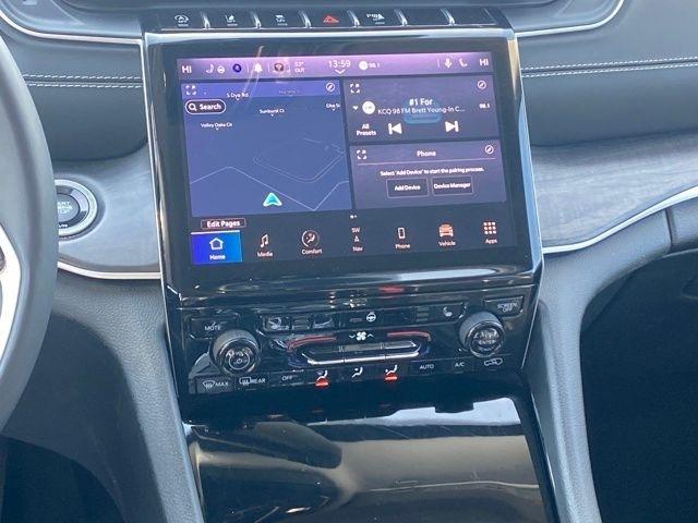 3.45 Rear Axle Ratio, 4-Wheel Disc Brakes, 6 Speakers, ABS brakes, Active Noise Control System, Air Conditioning, Alloy wheels, AM/FM radio: SiriusXM with 360L, Anti-whiplash front head restraints, Audio memory, Auto High-beam Headlights, Automatic temperature control, Brake assist, Bumpers: body-color, Capri Leatherette Seats, Compass, Delay-off headlights, Driver door bin, Driver vanity mirror, Dual front impact airbags, Dual front side impact airbags, Electronic Stability Control, Emergency communication system, Four wheel independent suspension, Front anti-roll bar, Front Bucket Seats, Front Center Armrest w/Storage, Front dual zone A/C, Front fog lights, Front reading lights, Fully automatic headlights, Garage door transmitter, Heated door mirrors, Heated front seats, Heated rear seats, Heated steering wheel, Illuminated entry, Knee airbag, Low tire pressure warning, Memory seat, Molded In Color Black/Gloss Black Roof Rails, Navigation System, Normal Duty Suspension, Occupant sensing airbag, Outside temperature display, Overhead airbag, Overhead console, Panic alarm, ParkView Rear Back-Up Camera, Passenger door bin, Passenger vanity mirror, Power door mirrors, Power driver seat, Power Liftgate, Power passenger seat, Power steering, Power windows, Quick Order Package 23E, Radio data system, Radio: Uconnect 5 Nav w/10.1" Display, Rear anti-roll bar, Rear reading lights, Rear window defroster, Rear window wiper, Remote keyless entry, Security system, Speed control, Speed-Sensitive Wipers, Split folding rear seat, Spoiler, Steering wheel mounted audio controls, Tachometer, Telescoping steering wheel, Tilt steering wheel, Traction control, Trip computer, Turn signal indicator mirrors, Variably intermittent wipers, Voltmeter, Wheels: 18" x 8" Fully Painted Aluminum.
