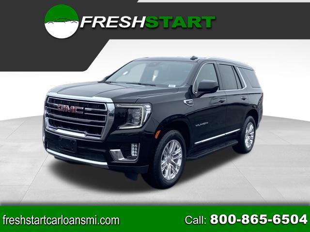 Bose 9-Speaker Stereo Audio System Feature, Navigation System, 12-Way Power Seat Adjusters, 2 Presets For Power Driver Seat, 3.23 Rear Axle Ratio, 3rd row seats: split-bench, 4-Wheel Disc Brakes, 9 Speakers, ABS brakes, Air Conditioning, Alloy wheels, AM/FM radio: SiriusXM with 360L, AM/FM Stereo, Apple CarPlay/Android Auto, Auto High-beam Headlights, Auto-dimming Rear-View mirror, Automatic Emergency Braking, Automatic temperature control, Bodyside moldings, Brake assist, Bright Chrome Bodyside Moldings, Bright Front & Rear Door Sill Plates, Bumpers: body-color, Chrome Door Handles w/Body-Color Strip, Compass, Delay-off headlights, Deleted 3 Years of OnStar Remote Access, Driver door bin, Driver vanity mirror, Dual front impact airbags, Dual front side impact airbags, Electronic Stability Control, Emergency communication system: OnStar and GMC connected services capable, Following Distance Indicator, Forward Collision Alert, Four wheel independent suspension, Front & Rear Park Assist, Front anti-roll bar, Front Bucket Seats, Front Center Armrest, Front dual zone A/C, Front fog lights, Front Pedestrian Braking, Front reading lights, Fully automatic headlights, Garage door transmitter, Hands-Free Power Programmable Rear Liftgate, Heated door mirrors, Heated Driver & Front Passenger Seats, Heated front seats, Illuminated entry, Inside Rear-View Auto-Dimming Mirror, IntelliBeam Automatic High Beam On/Off, Lane Change Alert w/Side Blind Zone Alert, Lane Keep Assist w/Lane Departure Warning, License Plate Front Mounting Package, Low tire pressure warning, Memory seat, Occupant sensing airbag, Outside temperature display, Overhead airbag, Overhead console, Panic alarm, Passenger door bin, Passenger vanity mirror, Perforated Heated & Ventilated Dr & Frt Pass Seats, Perforated Leather-Appointed Seating, Power door mirrors, Power driver seat, Power Liftgate, Power passenger seat, Power steering, Power windows, Preferred Equipment Group 4SA, Premium Smooth Ride Suspension, Rain sensing wipers, Rear air conditioning, Rear anti-roll bar, Rear Cross Traffic Alert, Rear reading lights, Rear seat center armrest, Rear window defroster, Rear window wiper, Remote keyless entry, Roof rack: rails only, Safety Alert Seat, Security system, SiriusXM w/360L, Speed control, Speed-sensing steering, Split folding rear seat, Spoiler, Steering wheel mounted audio controls, Tachometer, Telescoping steering wheel, Tilt steering wheel, Traction control, Trip computer, Universal Home Remote, Variably intermittent wipers, Ventilated front seats, Voltmeter, Wheels: 20" x 9" 6-Spoke Polished Aluminum, Wireless Charging, Bose 9-Speaker Stereo Audio System Feature, Navigation System.