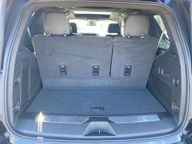 Bose 14-Speaker Surround w/CenterPoint, Dual-Pane Panoramic Power Sunroof, Navigation System, 12-Way Power Seat Adjusters, 14 Speakers, 15" Diagonal Multi-Color Head-Up Display, 2 Presets For Outside Rearview Mirrors, 3.23 Rear Axle Ratio, 3rd Row 60/40 Power-Folding Split-Bench Seat, 3rd row seats: split-bench, 4-Wheel Disc Brakes, ABS brakes, Adaptive Cruise Control, Adaptive suspension, Air Conditioning, Alloy wheels, AM/FM radio: SiriusXM with 360L, AM/FM Stereo, Apple CarPlay/Android Auto, Auto High-beam Headlights, Auto-dimming door mirrors, Auto-dimming Rear-View mirror, Auto-leveling suspension, Automatic Emergency Braking, Automatic temperature control, Black Roof Rack Cross Rails, Bodyside moldings, Brake assist, Bright Front & Rear Door Sill Plates, Bumpers: body-color, Chrome Door Handles w/Body-Color Strip, Compass, Delay-off headlights, Driver door bin, Driver vanity mirror, Dual Exhaust System, Dual front impact airbags, Dual front side impact airbags, Electronic Stability Control, Emergency communication system: OnStar and GMC connected services capable, Enhanced Automatic Emergency Braking, Floor Console, Following Distance Indicator, Forward Collision Alert, Four wheel independent suspension, Front & Rear Park Assist, Front anti-roll bar, Front Bucket Seats, Front Center Armrest, Front dual zone A/C, Front fog lights, Front Pedestrian Braking, Front reading lights, Fully automatic headlights, Galvano Bodyside Moldings, Garage door transmitter, Hands-Free Power Programmable Rear Liftgate, HD Surround Vision, Heads-Up Display, Heated 2nd Row Outboard Position Seats, Heated door mirrors, Heated Driver & Front Passenger Seats, Heated front seats, Heated rear seats, Heated Steering Wheel, Heated steering wheel, Hill Descent Control, Illuminated entry, Inside Rear-View Auto-Dimming Mirror, IntelliBeam Automatic High Beam On/Off, Lane Change Alert w/Side Blind Zone Alert, Lane Keep Assist w/Lane Departure Warning, Low tire pressure warning, Magnetic Ride Control Suspension, Memory seat, Occupant sensing airbag, Outside Heated Power-Adjustable Mirrors, Outside temperature display, Overhead airbag, Overhead console, Panic alarm, Passenger door bin, Passenger vanity mirror, Perforated Heated & Ventilated Dr & Frt Pass Seats, Perforated Leather Seating Surfaces, Power door mirrors, Power driver seat, Power Liftgate, Power passenger seat, Power Release 2nd Row Bucket Seats, Power steering, Power Tilt & Telescopic Steering Column, Power windows, Power-Retractable Assist Steps, Preferred Equipment Group 5SA, Rain sensing wipers, Rear air conditioning, Rear anti-roll bar, Rear Cross Traffic Alert, Rear Pedestrian Alert, Rear reading lights, Rear window defroster, Rear window wiper, Remote keyless entry, Roof rack: rails only, Safety Alert Seat, Security system, SiriusXM w/360L, Speed control, Speed-sensing steering, Split folding rear seat, Spoiler, Steering wheel memory, Steering wheel mounted audio controls, Tachometer, Telescoping steering wheel, Tilt steering wheel, Traction control, Trip computer, Turn signal indicator mirrors, Universal Home Remote, Variably intermittent wipers, Ventilated front seats, Voltmeter, Wheels: 20" x 9" 6-Spoke Polished Aluminum, Wireless Charging, Bose 14-Speaker Surround w/CenterPoint, Dual-Pane Panoramic Power Sunroof, Navigation System.