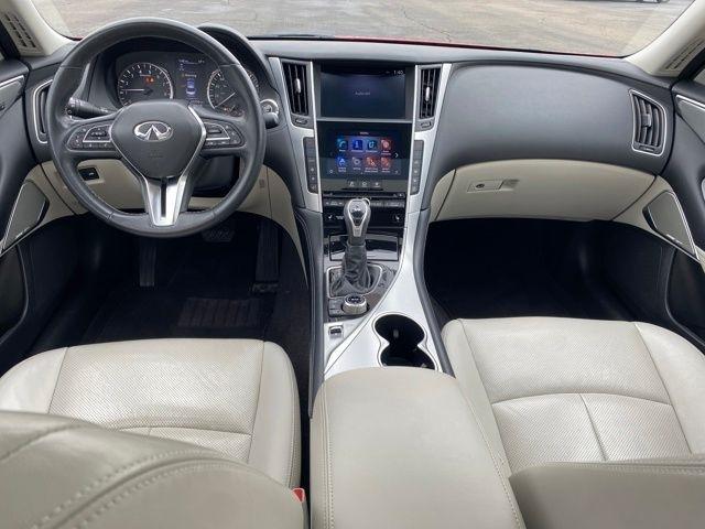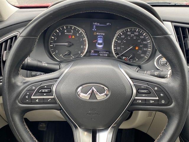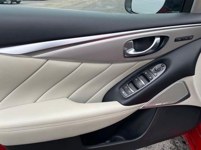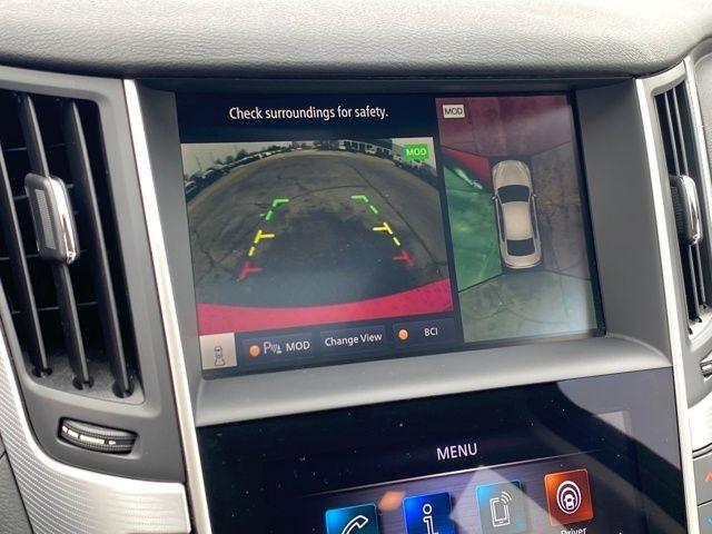 16 Speakers, 18" x 7.5" Aluminum Alloy Wheels, 4-Wheel Disc Brakes, ABS brakes, Air Conditioning, Alloy wheels, AM/FM radio: SiriusXM, Auto High-beam Headlights, Auto tilt-away steering wheel, Auto-dimming Rear-View mirror, Automatic temperature control, Blind Spot Warning, Brake assist, Bumpers: body-color, CD player, Compass, Delay-off headlights, Driver door bin, Driver vanity mirror, Dual front impact airbags, Dual front side impact airbags, Electronic Stability Control, Emergency communication system: INFINITI Connection, Four wheel independent suspension, Front anti-roll bar, Front Bucket Seats, Front Center Armrest, Front dual zone A/C, Front fog lights, Front reading lights, Fully automatic headlights, Garage door transmitter: HomeLink, Heated door mirrors, Heated Front Bucket Seats, Heated front seats, Heated steering wheel, Illuminated entry, Leather Shift Knob, Leather steering wheel, Leather-Appointed Seating Surfaces, Low tire pressure warning, Memory seat, Occupant sensing airbag, Outside temperature display, Overhead airbag, Overhead console, Panic alarm, Passenger door bin, Passenger vanity mirror, Power door mirrors, Power driver seat, Power moonroof, Power passenger seat, Power steering, Power windows, Radio data system, Radio: INFINITI InTouch Dual HD Display System, Rain sensing wipers, Rear anti-roll bar, Rear reading lights, Rear seat center armrest, Rear window defroster, Remote keyless entry, Security system, Speed control, Speed-Sensitive Wipers, Split folding rear seat, Steering wheel memory, Steering wheel mounted audio controls, Tachometer, Telescoping steering wheel, Tilt steering wheel, Traction control, Trip computer, Turn signal indicator mirrors, Variably intermittent wipers.