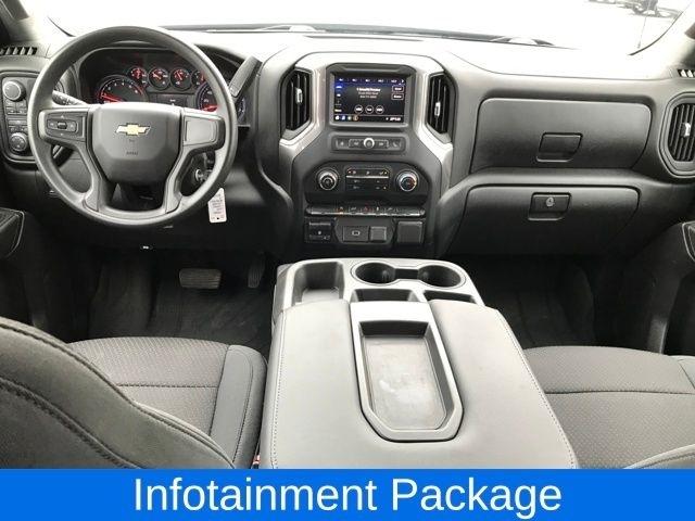 Custom Convenience Package, Custom Value Package, Infotainment Package, Trailering Package, 120-Volt Bed Mounted Power Outlet, 120-Volt Instrument Panel Power Outlet, 170 Amps Alternator, 220 Amps Alternator, 3.42 Rear Axle Ratio, 3.5" Diagonal Monochromatic Display, 4-Wheel Disc Brakes, 40/20/40 Front Split Bench Seat, 4G LTE Wi-Fi Hot Spot Capable, 6 Speakers, ABS brakes, Air Conditioning, All-Weather Floor Liner (LPO), Alloy wheels, Apple CarPlay/Android Auto, Automatic Stop/Start, Bluetooth® For Phone, Body Color Grille, Brake assist, Bumpers: body-color, Chevrolet Connected Access Capable, Cloth Seat Trim, Color-Keyed Carpeting Floor Covering, Compass, Deep-Tinted Glass, Delay-off headlights, Driver door bin, Driver vanity mirror, Dual front impact airbags, Dual front side impact airbags, Electric Rear-Window Defogger, Electronic Stability Control, Exterior Parking Camera Rear, EZ Lift Power Lock & Release Tailgate, Front 40/20/40 Split-Bench Seat, Front anti-roll bar, Front Black Bowtie Emblem (LPO), Front Center Armrest, Front Frame-Mounted Black Recovery Hooks, Front reading lights, Front Rubberized Vinyl Floor Mats, Front wheel independent suspension, Fully automatic headlights, Heated door mirrors, Heavy Duty Suspension, Heavy-Duty Rear Locking Differential, Hitch Guidance, Illuminated entry, Integrated Trailer Brake Controller, LED Cargo Area Lighting, Locking Tailgate, Low tire pressure warning, Manual Tilt-Wheel Steering Column, Occupant sensing airbag, OnStar & Chevrolet Connected Services Capable, Outside temperature display, Overhead airbag, Overhead console, Panic alarm, Passenger door bin, Passenger vanity mirror, Polished Exhaust Tip, Power Door Locks, Power door mirrors, Power Front Windows w/Driver Express Up/Down, Power Front Windows w/Passenger Express Down, Power Rear Windows w/Express Down, Power steering, Power windows, Preferred Equipment Group 1CX, Radio data system, Radio: Chevrolet Infotainment 3 System, Rear 60/40 Folding Bench Seat (Folds Up), Rear reading lights, Rear Rubberized-Vinyl Floor Mats, Rear step bumper, Remote Keyless Entry, Remote keyless entry, Remote Vehicle Starter System, Single-Zone Manual/Semi-Automatic Air Conditioning, SiriusXM Radio, Speed control, Speed-sensing steering, Split folding rear seat, Steering Wheel Mounted Electronic Cruise Control, Tachometer, Theft Deterrent System (Unauthorized Entry), Tilt steering wheel, Traction control, Trip computer, Variably intermittent wipers, Voltmeter, Wheel Locks (Set of 4) (LPO), Wheels: 20" x 9" Bright Silver Painted Aluminum, Custom Convenience Package, Custom Value Package, Infotainment Package, Trailering Package.