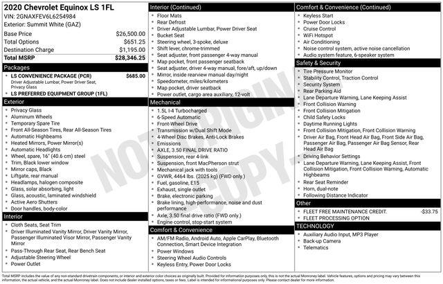 17" Aluminum Wheels, 2 Rear USB Charging-Only Ports, 2 USB Ports & Auxiliary Input Jack, 2-Way Power Driver Lumbar Control Seat Adjuster, 3.50 Final Drive Axle Ratio, 4-Way Manual Driver Seat Adjuster, 4-Wheel Disc Brakes, 6 Speaker Audio System Feature, 6 Speakers, 8-Way Power Driver Seat Adjuster, ABS brakes, Air Conditioning, Alloy wheels, AM/FM radio, Apple CarPlay/Android Auto, Auto High-beam Headlights, Bluetooth® For Phone, Brake assist, Bumpers: body-color, Compass, Deep-Tinted Rear Glass, Delay-off headlights, Driver door bin, Driver vanity mirror, Dual front impact airbags, Dual front side impact airbags, Electronic Stability Control, Emergency communication system: OnStar and Chevrolet connected services capable, Four wheel independent suspension, Front anti-roll bar, Front Bucket Seats, Front Center Armrest, Front Passenger 4-Way Manual Seat Adjuster, Front reading lights, Fully automatic headlights, Heated door mirrors, Illuminated entry, Low tire pressure warning, LS Convenience Package, Occupant sensing airbag, Outside temperature display, Overhead airbag, Overhead console, Panic alarm, Passenger door bin, Passenger vanity mirror, Power door mirrors, Power steering, Power windows, Preferred Equipment Group 1FL, Premium audio system: Chevrolet Infotainment 3, Premium Cloth Seat Trim, Radio data system, Radio: Chevrolet Infotainment 3 System w/AM/FM, Rear anti-roll bar, Rear reading lights, Rear seat center armrest, Rear window defroster, Rear window wiper, Remote keyless entry, Security system, SiriusXM Radio Delete, Speed control, Speed-sensing steering, Split folding rear seat, Spoiler, Steering wheel mounted audio controls, Tachometer, Telescoping steering wheel, Tilt steering wheel, Traction control, Trip computer, Variably intermittent wipers.