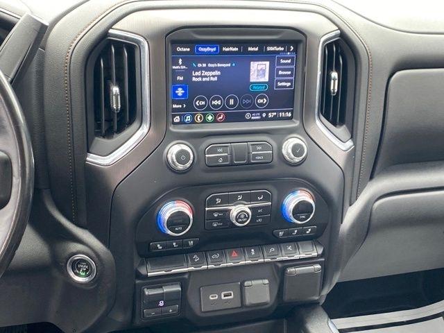 10-Way Power Driver Seat Adjuster w/Lumbar, 10-Way Power Passenger Seat Adjuster w/Lumbar, 12-Volt Rear Auxiliary Power Outlet, 120-Volt Bed Mounted Power Outlet, 120-Volt Instrument Panel Power Outlet, 18" Machined Aluminum Wheels, 2 USB Ports, 2 USB Ports (1st Row), 2-Speed Active Transfer Case, 20" Machined Aluminum Wheels, 2nd Row Dual USB Charge-Only Ports, 3.73 Rear Axle Ratio, 4-Wheel Disc Brakes, 4.2" Diagonal Color Display Driver Info Center, 6 Speakers, 6-Speaker Audio System Feature, ABS brakes, Air Conditioning, Alloy wheels, AM/FM radio: SiriusXM with 360L, Apple CarPlay/Android Auto, Auto-dimming door mirrors, Auto-dimming Rear-View mirror, Automatic temperature control, Brake assist, Bumpers: body-color, Compass, Compass Located In Instrument Cluster, Deep-Tinted Glass, Delay-off headlights, Driver door bin, Driver Memory, Driver vanity mirror, Dual front impact airbags, Dual front side impact airbags, Electric Rear-Window Defogger, Electrical Lock Control Steering Column, Electronic Stability Control, Emergency communication system: OnStar and GMC connected services capable, Floor-Mounted Center Console, Front anti-roll bar, Front Bucket Seats, Front Center Armrest, Front dual zone A/C, Front fog lights, Front Prem Floor Liners w/Removable Carpet Insert, Front reading lights, Front wheel independent suspension, Fully automatic headlights, GMC Connected Access Capable, HD Rear Vision Camera, Heated & Ventilated Front Bucket Seats, Heated 2nd Row Outboard Seats, Heated door mirrors, Heated Driver & Front Outboard Passenger Seats, Heated front seats, Heated rear seats, Heated steering wheel, Heavy-Duty 80 Amp Battery, Hill Descent Control, Hitch Guidance w/Hitch View, Illuminated entry, In-Vehicle Trailering System App, Integrated Trailer Brake Controller, Keyless Open & Start, LED Cargo Area Lighting, LED Smoked Amber Roof Marker Lamps, Low tire pressure warning, Manual Tilt-Wheel/Telescoping Steering Column, Occupant sensing airbag, Off-Road Suspension, OnStar & GMC Connected Services Capable, Outside temperature display, Overhead airbag, Overhead console, Painted Black Surround Grille, Panic alarm, Passenger door bin, Passenger vanity mirror, Perforated Leather-Appointed Front Seat Trim, Pickup Box, Power Door Locks, Power door mirrors, Power driver seat, Power Front Passenger Windows w/Express Up/Down, Power passenger seat, Power Rear Windows w/Express Down, Power steering, Power windows, Power Windows w/Driver Express Up/Down, Power-Retractable Black Assist Steps, Preferred Equipment Group 4SB, Premium audio system: Premium GMC Infotainment System, Radio: AM/FM w/Premium GMC Infotainment System, Rear Prem Floor Liners w/Removable Carpet Insert, Rear reading lights, Rear seat center armrest, Rear step bumper, Rear Wheelhouse Liners, Rear window defroster, Red Recovery Hooks, Remote keyless entry, Remote Vehicle Starter System, Security system, SiriusXM w/360L, Speed control, Speed-sensing steering, Split folding rear seat, Spray-On Pickup Box Bed Liner w/AT4 Logo, Steering Wheel Audio Controls, Steering wheel mounted audio controls, Tachometer, Telescoping steering wheel, Tilt steering wheel, Traction control, Trip computer, Turn signal indicator mirrors, Unauthorized Entry Theft-Deterren