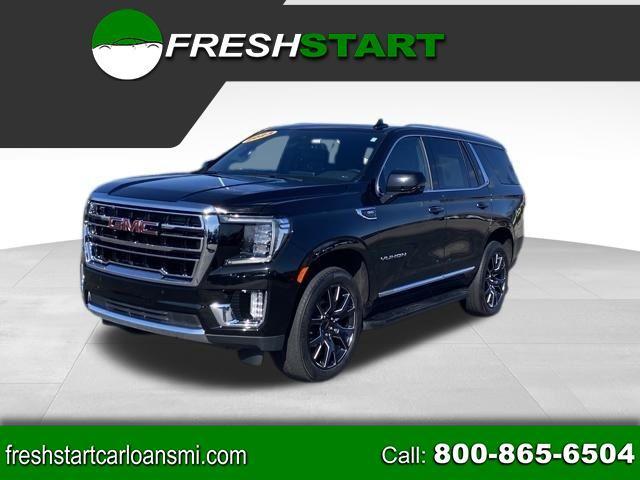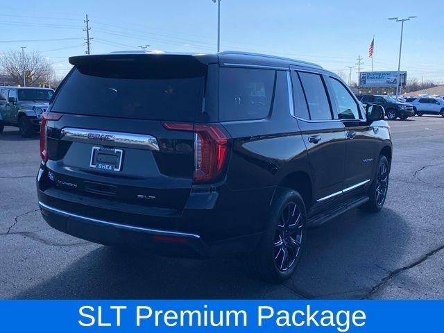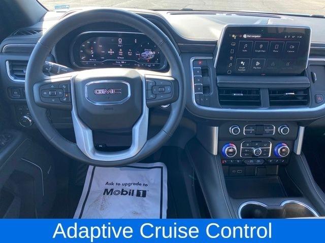 2 Presets For Outside Rearview Mirrors, 3rd Row 60/40 Power-Folding Split-Bench Seat, Adaptive Cruise Control, Dual-Pane Panoramic Power Sunroof, Enhanced Automatic Emergency Braking, HD Surround Vision, Heated 2nd Row Outboard Position Seats, Heated Steering Wheel, Navigation System, Outside Heated Power-Adjustable Mirrors, Power Release 2nd Row 60/40 Split-Folding Bench Seat, Power Tilt & Telescopic Steering Column, Rear Pedestrian Alert, SLT Luxury Package, SLT Premium Package, 2 Presets For Power Driver Seat, 3.23 Rear Axle Ratio, 3rd row seats: split-bench, 4-Wheel Disc Brakes, 9 Speakers, ABS brakes, Air Conditioning, Alloy wheels, AM/FM radio: SiriusXM with 360L, AM/FM Stereo, Apple CarPlay/Android Auto, Auto High-beam Headlights, Auto-dimming Rear-View mirror, Automatic Emergency Braking, Automatic temperature control, Bodyside moldings, Bose 9-Speaker Stereo Audio System Feature, Brake assist, Bright Chrome Bodyside Moldings, Bright Front & Rear Door Sill Plates, Bumpers: body-color, Chrome Door Handles w/Body-Color Strip, Compass, Delay-off headlights, Driver door bin, Driver vanity mirror, Dual front impact airbags, Dual front side impact airbags, Electronic Stability Control, Emergency communication system: OnStar and GMC connected services capable, Following Distance Indicator, Forward Collision Alert, Four wheel independent suspension, Front & Rear Park Assist, Front anti-roll bar, Front Bucket Seats, Front Center Armrest, Front dual zone A/C, Front fog lights, Front Pedestrian Braking, Front reading lights, Fully automatic headlights, Garage door transmitter, Hands-Free Power Programmable Rear Liftgate, Heated & Ventilated Driver & Front Passenger Seats, Heated door mirrors, Heated Driver & Front Passenger Seats, Heated front seats, Illuminated entry, Inside Rear-View Auto-Dimming Mirror, IntelliBeam Automatic High Beam On/Off, Lane Change Alert w/Side Blind Zone Alert, Lane Keep Assist w/Lane Departure Warning, Low tire pressure warning, Memory seat, Occupant sensing airbag, Outside temperature display, Overhead airbag, Overhead console, Panic alarm, Passenger door bin, Passenger vanity mirror, Perforated Leather-Appointed Seating, Power door mirrors, Power driver seat, Power Liftgate, Power passenger seat, Power Release 2nd Row Bucket Seats, Power steering, Power windows, Preferred Equipment Group 4SA, Premium Smooth Ride Suspension, Rain sensing wipers, Rear air conditioning, Rear anti-roll bar, Rear Cross Traffic Alert, Rear reading lights, Rear seat center armrest, Rear window defroster, Rear window wiper, Remote keyless entry, Roof rack: rails only, Safety Alert Seat, Security system, SiriusXM w/360L, Speed control, Speed-sensing steering, Split folding rear seat, Spoiler, Steering wheel mounted audio controls, Tachometer, Telescoping steering wheel, Tilt steering wheel, Traction control, Trip computer, Universal Home Remote, Variably intermittent wipers, Ventilated front seats, Voltmeter, Wheel Locks (Set of 4) (LPO), Wheels: 20" x 9" 6-Spoke Polished Aluminum, Wheels: 22" x 9" 6-Spoke Carbon Flash Metallic Alum, Wireless Charging, 2 Presets For Outside Rearview Mirrors, 3rd Row 60/40 Power-Folding Split-Bench Seat, Adaptive Cruise Control, Dual-Pane Panoramic Power Sunroof, Enhanced