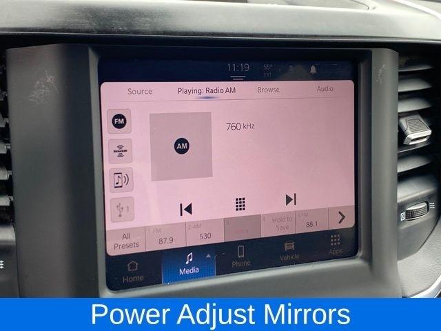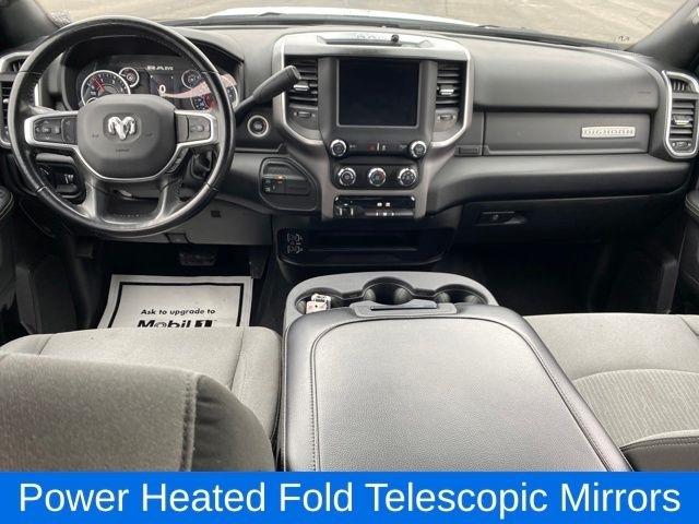 2nd Row In Floor Storage Bins, Auto Power-Folding Mirrors, Black Exterior Mirrors, Center Hub, Dual Glove Boxes, Exterior Mirrors Courtesy Lamps, Exterior Mirrors w/Heating Element, Exterior Mirrors w/Supplemental Signals, Foam Bottle Insert (Door Trim Panel), Footwell Courtesy Lamp, Forward & Reverse Utility Lights, Front Fog Lamps, Glove Box Lamp, Leather Wrapped Steering Wheel, Level 1 Equipment Group, Locking Lower Glove Box, Mirror Running Lights, Power Adjust Mirrors, Power Heated Fold Telescopic Mirrors, Power Telescoping Mirrors, Power-Adjustable Convex Aux Mirrors, Premium Cloth 40/20/40 Bench Seat, Radio: Uconnect 5 w/8.4" Display, Rear Dome w/On/Off Switch Lamp, Steering Wheel Mounted Audio Controls, Wheels: 18" x 8.0" Polished Aluminum, 2 Way Rear Headrest Seat, 3.73 Axle Ratio, 4 Way Front Headrests, 4-Wheel Disc Brakes, 40/20/40 Split Bench Seat, 4G LTE Wi-Fi Hot Spot, 5th Wheel/Gooseneck Towing Prep Group, 6 Speakers, 8.4" Touchscreen Display, ABS brakes, Active Noise Control System, Air Conditioning, All R1 Low Radios, All Radio Equipped Vehicles, Apple CarPlay, Bluetooth Handsfree Phone & Audio, Brake assist, Bumpers: chrome, Chrome Flat Cab-Length Side Steps, Cloth 40/20/40 Bench Seat, Compass, Connectivity - US/Canada, Delay-off headlights, Driver door bin, Dual front impact airbags, Dual front side impact airbags, Electronic Stability Control, Electronically Controlled Throttle, Emergency communication system: SiriusXM Guardian, For Details Visit DriveUconnect.com, For More Info, Call 800-643-2112, Front anti-roll bar, Front Armrest w/Cupholders, Front Center Armrest w/Storage, Front Center Seat Cushion Storage, Front License Plate Bracket, Front reading lights, Front Seat Back Map Pockets, Fully automatic headlights, Global Telematics Box Module (TBM), Google Android Auto, GPS Antenna Input, Heated door mirrors, Illuminated entry, Integrated Center Stack Radio, Integrated Voice Command w/Bluetooth, Low tire pressure warning, Manual Adjust 4-Way Driver Seat, Manual Adjust 4-Way Front Passenger Seat, Manufacturer's Statement of Origin, MOPAR Spray In Bedliner, Occupant sensing airbag, Outside temperature display, Overhead airbag, Overhead console, Panic alarm, ParkView Rear Back-Up Camera, Passenger door bin, Passenger vanity mirror, Power Adjust 8-Way Driver Seat, Power door mirrors, Power steering, Power windows, Quick Order Package 2HZ Big Horn, Radio data system, Radio: Uconnect 3 w/5" Display, Radio: Uconnect 5 w/8.4" Display (DISC), Rear 60/40 Folding Seat, Rear Folding Seat, Rear seat center armrest, Rear step bumper, Remote keyless entry, Remote USB Port - Charge Only, Selectable Tire Fill Alert, SiriusXM Radio Service, SiriusXM Satellite Radio, Speed control, Storage Tray, Tachometer, Tilt steering wheel, Tip Start, Traction control, Trip computer, Turn signal indicator mirrors, Variably intermittent wipers, Voltmeter, Wheels: 18" x 8.0" Steel Chrome Clad, 2nd Row In Floor Storage Bins, Auto Power-Folding Mirrors, Black Exterior Mirrors, Center Hub, Dual Glove Boxes, Exterior Mirrors Courtesy Lamps, Exterior Mirrors w/Heating Element, Exterior Mirrors w/Supplemental Signals, Foam Bottle Insert (Door Trim Panel), Footwell Courtesy Lamp, F